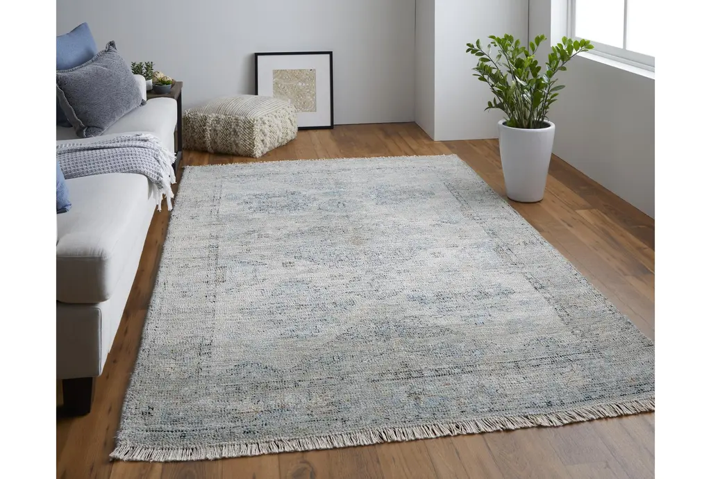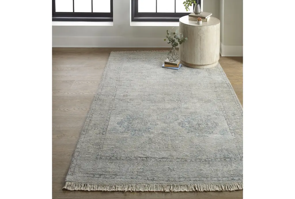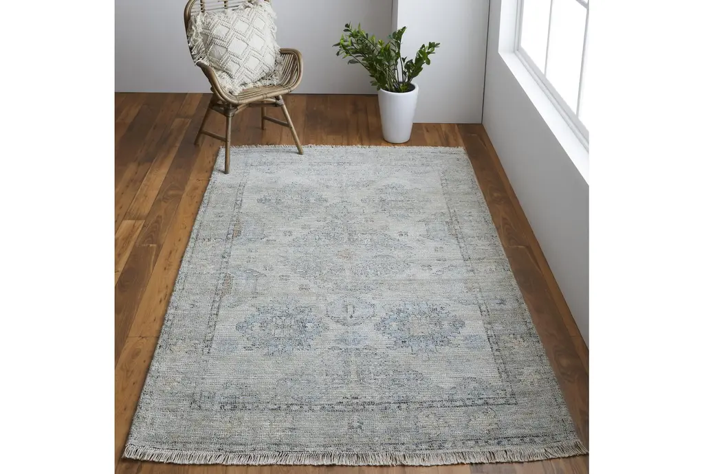 Enhance your living space with the 3'5"x5'5" Wool Rug in Faded Traditional Stone. This beautiful, low-pile rug features a botanical design that brings a touch of rustic charm to any indoor setting. The rectangle shape and soft grey tones make it a versatile addition to your home decor.