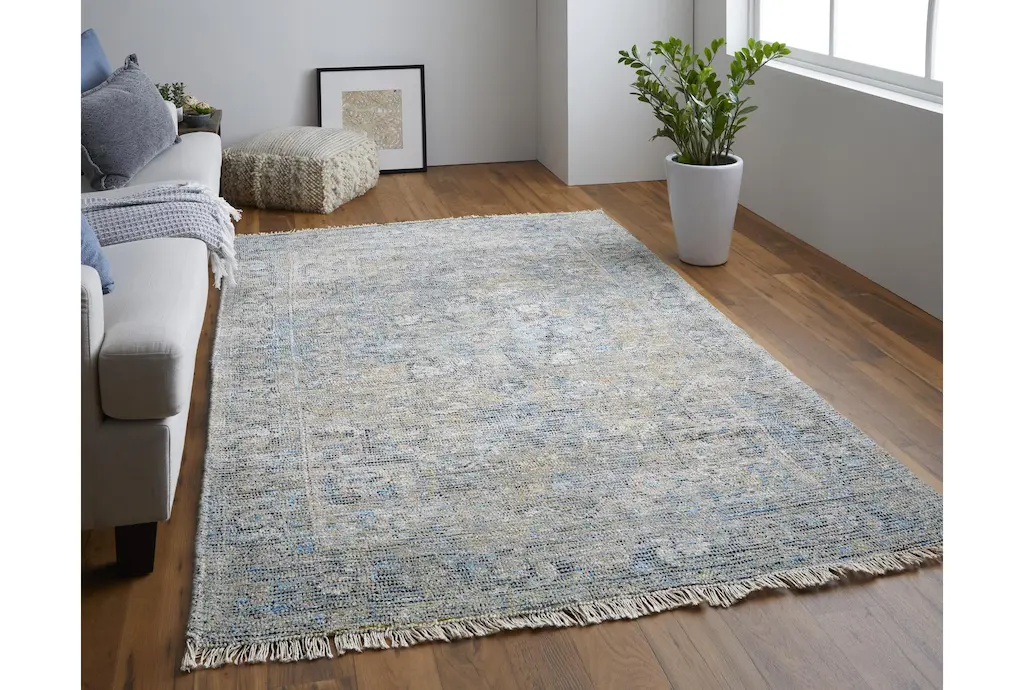 3'5"x5'5" Wool Rug-Multi Faded Traditional Beige | Low Pile | Rectangle | Botanical