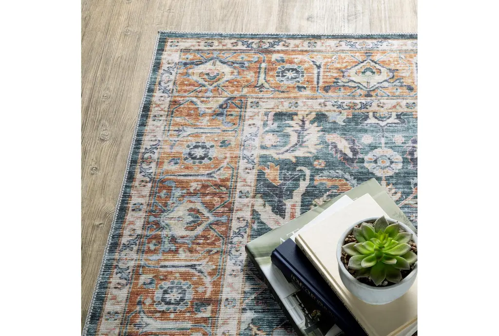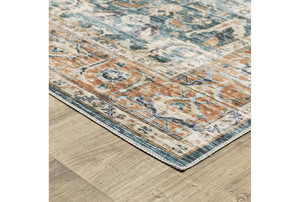 3'6"x6'6" Rug-Shem Creek Machine Washable Traditional Blue/rust | Uv Resistant | Non Slip | Performance | Oriental | Rectangle