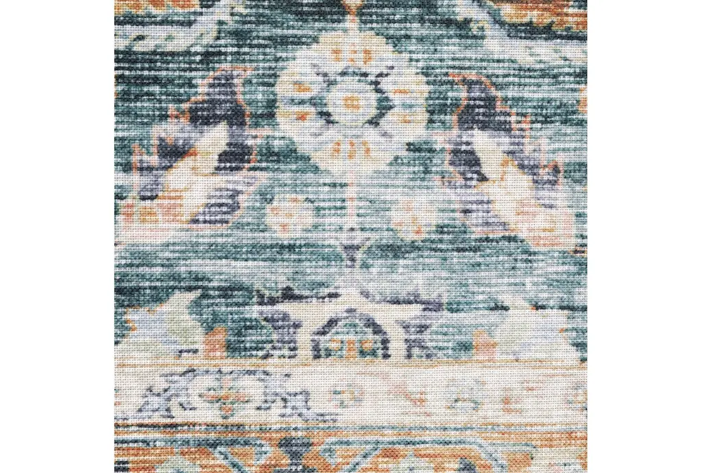 This 3'6"x6'6" Rug-Shem Creek Machine Washable Traditional Blue/Rust is perfect for adding a touch of sophistication to your indoor space. The combination of blue and rust colors creates a beautiful traditional oriental pattern that is both UV resistant and non-slip. Made from durable polyester, this rug is also machine washable, making it easy to maintain.