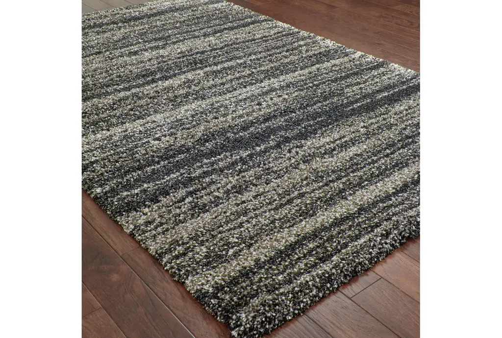 3'8"x5'4" Fiber Rug-Beverly Shag Stripe Grey | Geometric | Rectangle