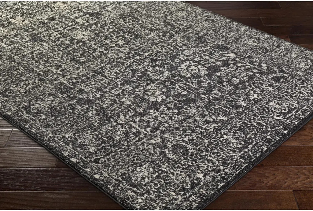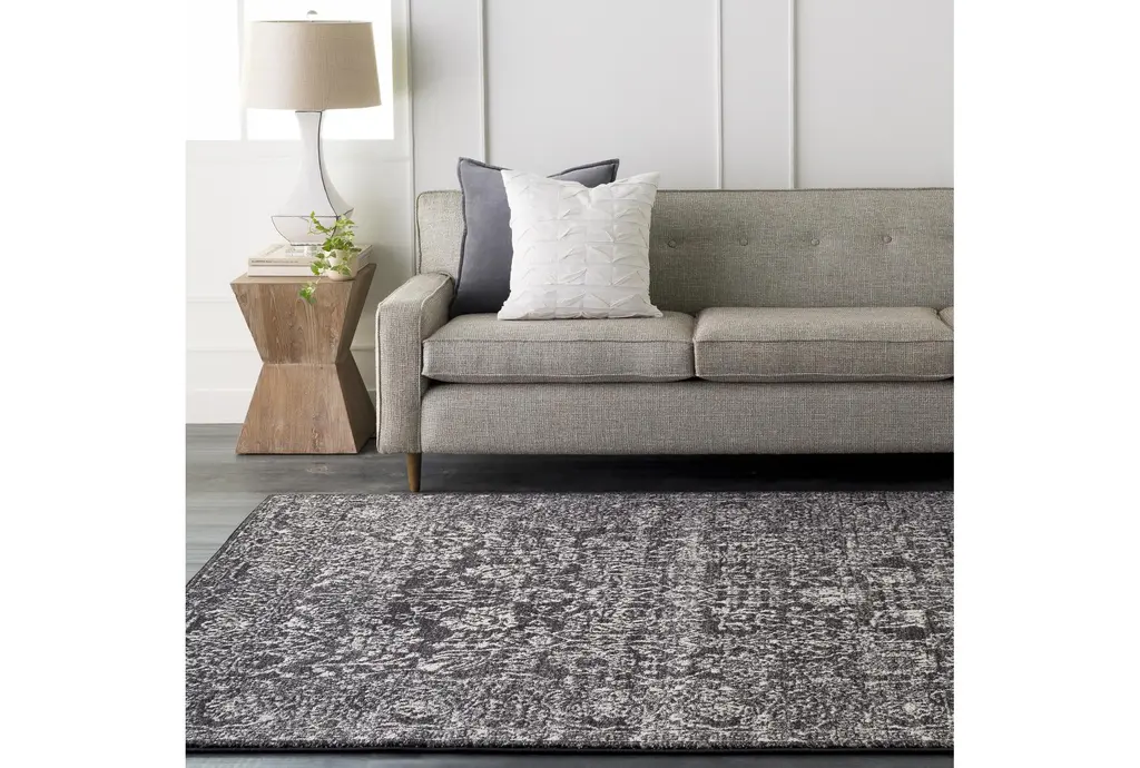 Add a touch of contemporary style to your interior spaces with the 3'9"x5'6" Fiber Rug-Ivete Charcoal. This rectangular rug by Surya features a botanical design that brings a natural and sophisticated look to any entryway or living room. The combination of black, light grey, and beige colors creates a neutral palette that complements various decor themes.