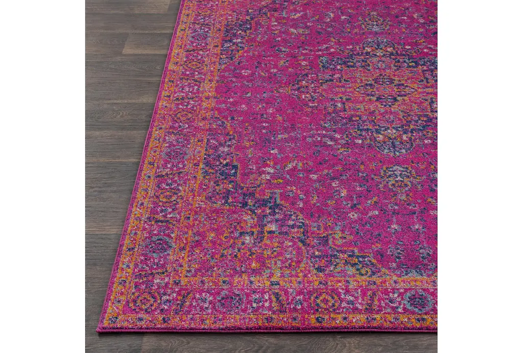 3'9"x5'6" Fiber Rug-Ivete Medallion Traditional Fuschia/orange | Floral | Low Pile | Rectangle By Surya