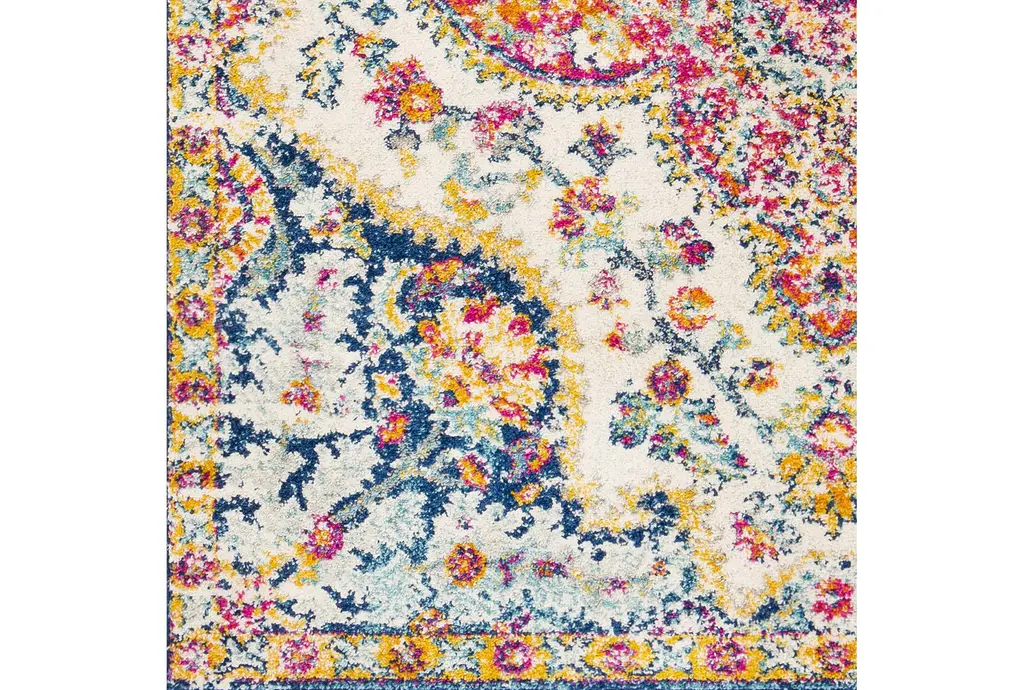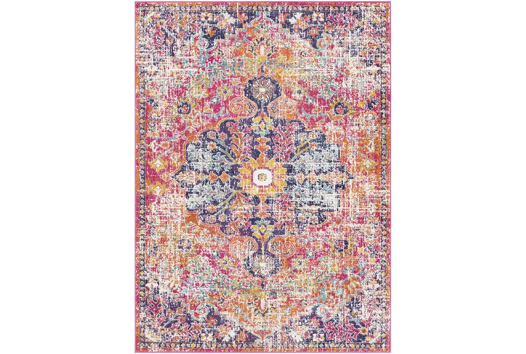 Add a burst of vibrant color to your entryway or indoor space with the 3'9"x5'6" Fiber Rug by Surya. Featuring a traditional design with bright multicolor hues, this rug is perfect for creating a lively atmosphere in any room. Made from 100% polypropylene, it offers durability and easy maintenance.