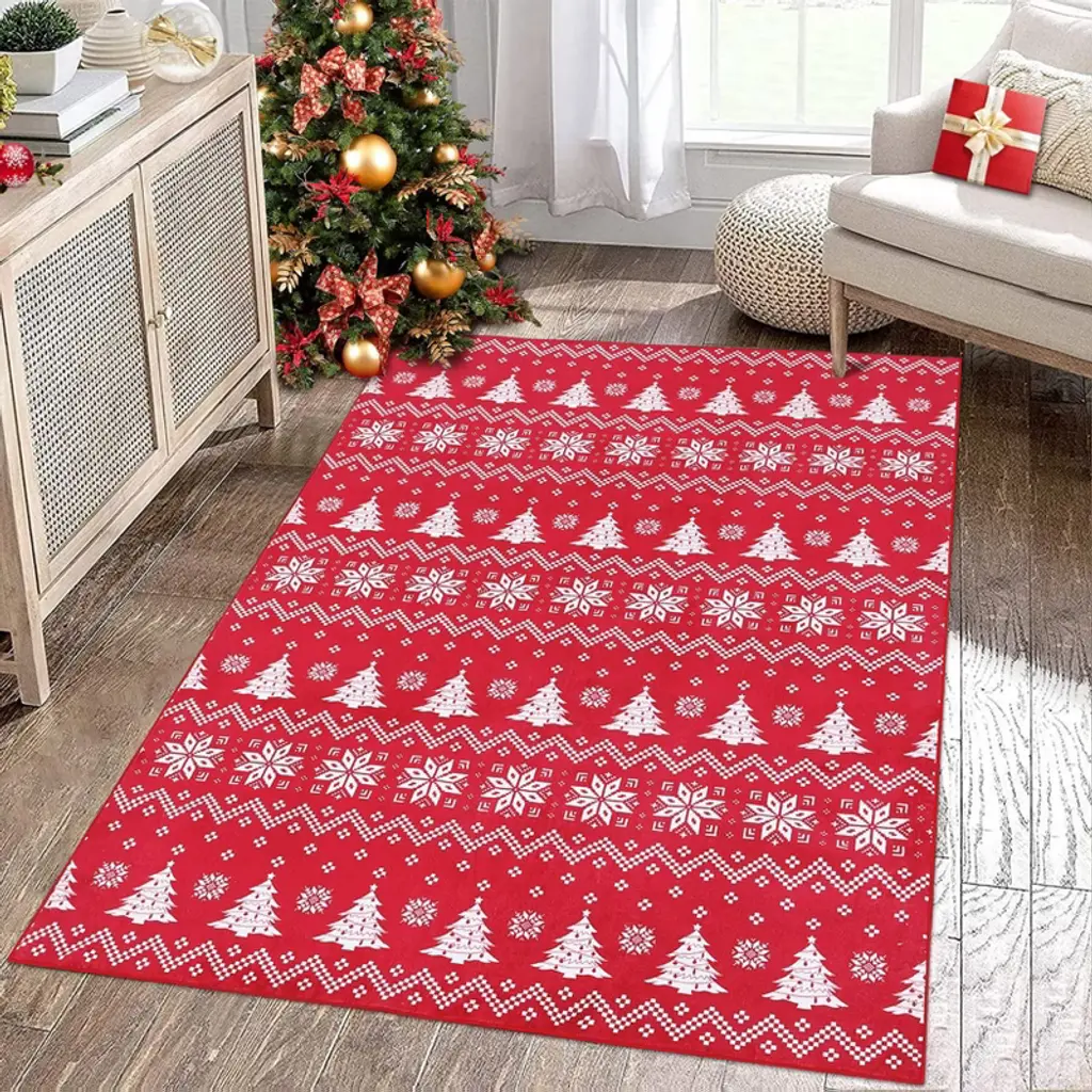 Enhance your holiday decor with our Red Christmas Decorations Floor Mat, featuring a modern Christmas tree striped design that brings festive cheer to any bedroom or indoor space. This beautifully printed carpet combines style and functionality, offering a soft, thin, and non-shedding surface that feels comfortable underfoot while maintaining its elegant appearance. Crafted for convenience, this floor mat is fully washable, making it easy to keep clean throughout the holiday season and beyond. Its durable construction ensures long-lasting use without compromising softness, perfect for high-traffic areas or cozy corners alike. Key Features: - Festive modern Christmas tree striped design adds a vibrant holiday touch to your home - Soft and thin material provides comfort without bulk - Non-shedding fibers maintain cleanliness and reduce mess - Washable fabric allows for easy maintenance and freshness - Ideal for bedrooms, living rooms, or any indoor space needing a seasonal update Celebrate the season in style with this versatile and practical Christmas floor mat. Its contemporary design and superior quality make it a perfect addition to your holiday decorations, creating a warm and inviting atmosphere for family and guests. Order now and bring a touch of festive charm to your home!