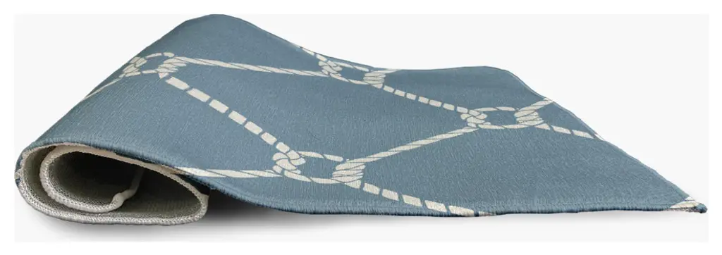 Bring the Seaside to your home decor with the Ahoy! Indoor/outdoor Rug from our Nautical Nights Collection. Everyone will delight in the space defining design brought to your porch, patio, kitchen, or bathroom by this area rug. The artistic and colorful design is printed on a soft polyester base with a skid resistant backing, making it a perfect way to add color, flare and personality to any indoor or outdoor space. To clean, use a mild soap and lay flat to dry.Soft underfoot, made of textured ChenilleStylish and functional to enliven your outdoor d?corSerged edgesCoated skid-resistant backingQuick-dry constructionStiff, lay-flat design