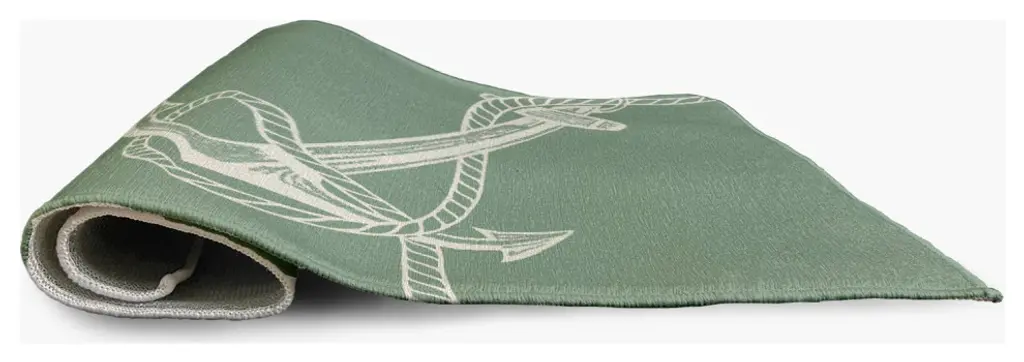 Bring the Seaside to your home decor with the Anchored Indoor/outdoor Rug from our Nautical Nights Collection. Everyone will delight in the space defining design brought to your porch, patio, kitchen, or bathroom by this area rug. The artistic and colorful design is printed on a soft polyester base with a skid resistant backing, making it a perfect way to add color, flare and personality to any indoor or outdoor space. To clean, use a mild soap and lay flat to dry.Soft underfoot, made of textured ChenilleStylish and functional to enliven your outdoor d?corSerged edgesCoated skid-resistant backingQuick-dry constructionStiff, lay-flat design
