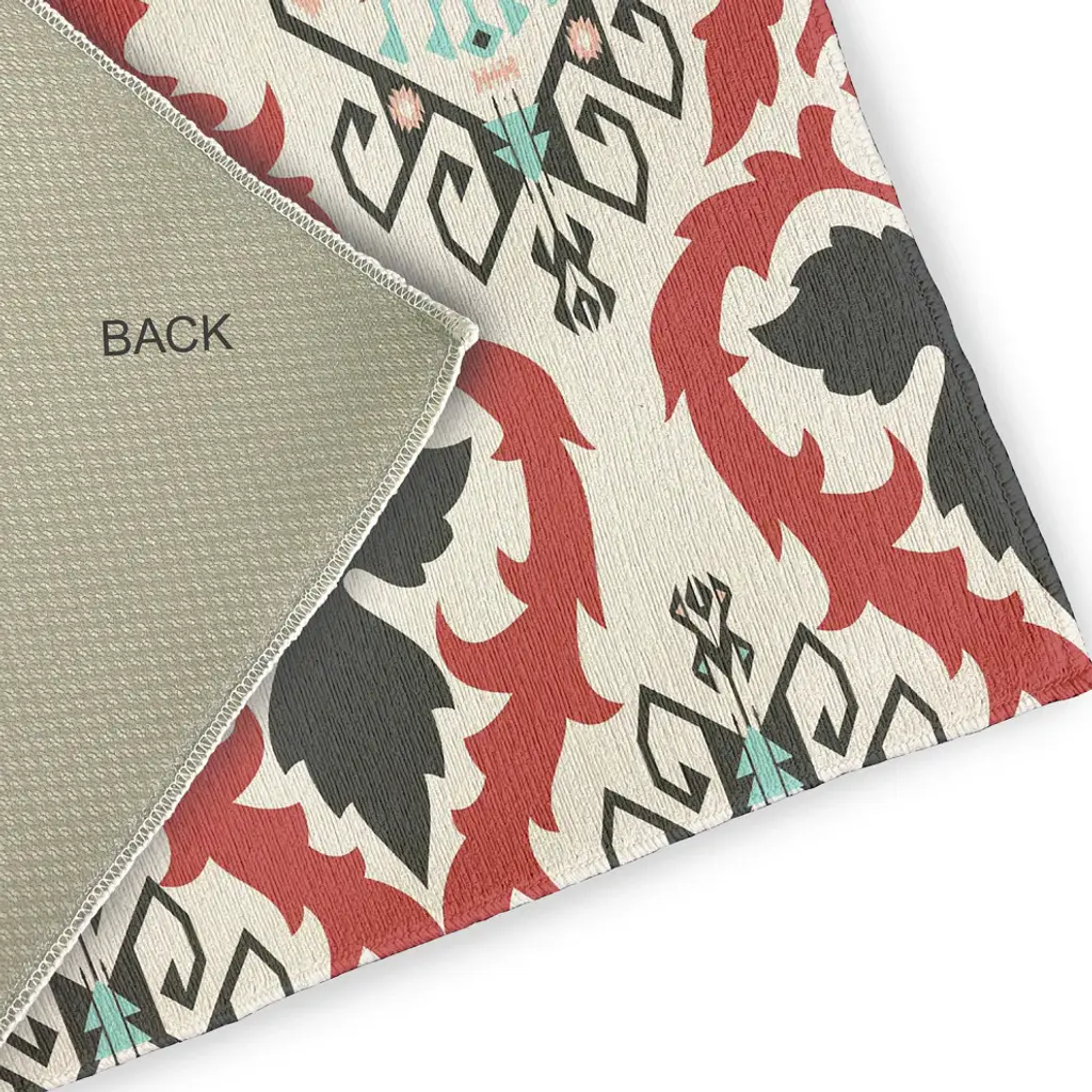 Create a colorful and radiant vibe around your home with the Bombay Indoor/outdoor Rug from our Happy Hippy Collection. Everyone will delight in the space defining design brought to your porch, patio, kitchen, or bathroom by this area rug. The artistic and colorful design is printed on a soft polyester base with a skid resistant backing, making it a perfect way to add color, flare and personality to any indoor or outdoor space. To clean, use a mild soap and lay flat to dry.
