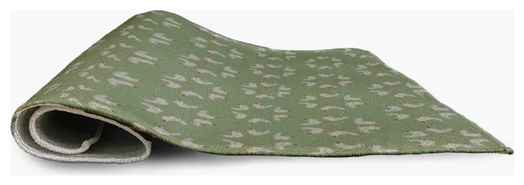 Enjoy a new style this season with a Chickens-go-round Indoor/outdoor Rug from our Funky Junky Collection. Everyone will delight in the space defining design brought to your porch, patio, kitchen, or bathroom by this area rug. The artistic and colorful design is printed on a soft polyester base with a skid resistant backing, making it a perfect way to add color, flare and personality to any indoor or outdoor space. To clean, use a mild soap and lay flat to dry.