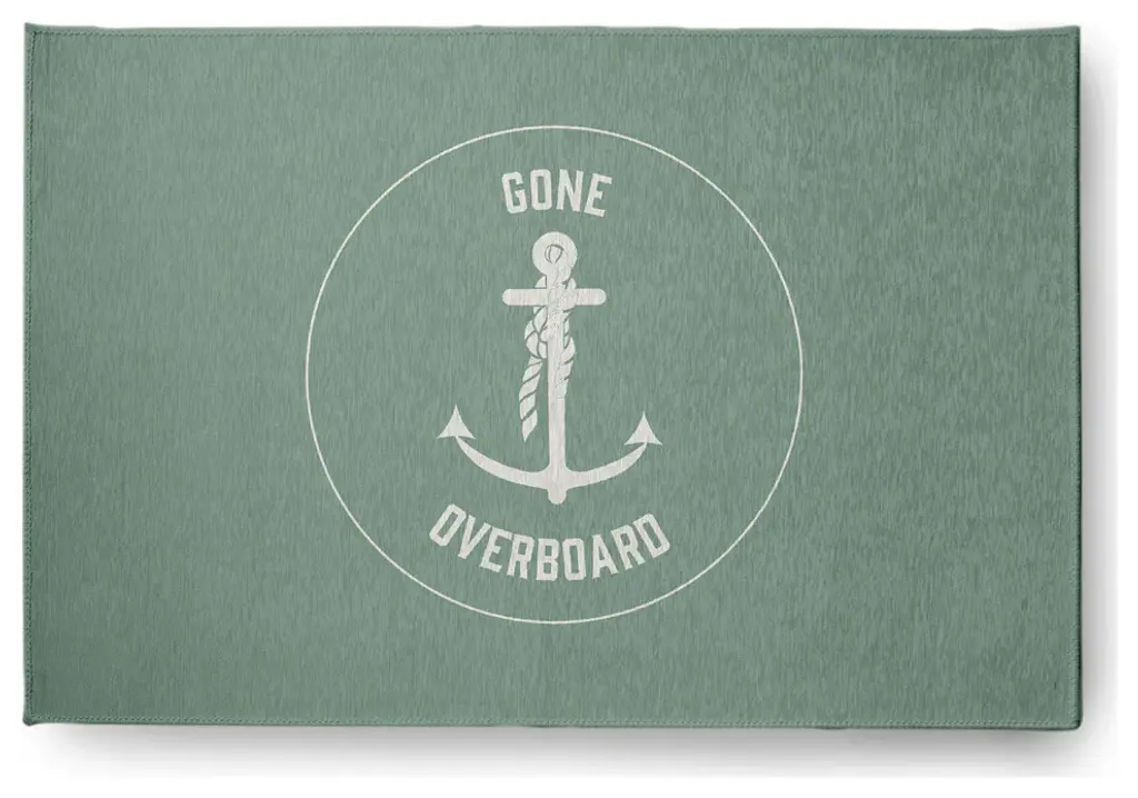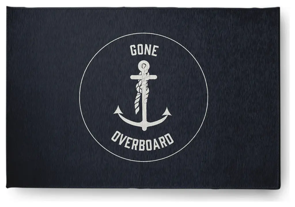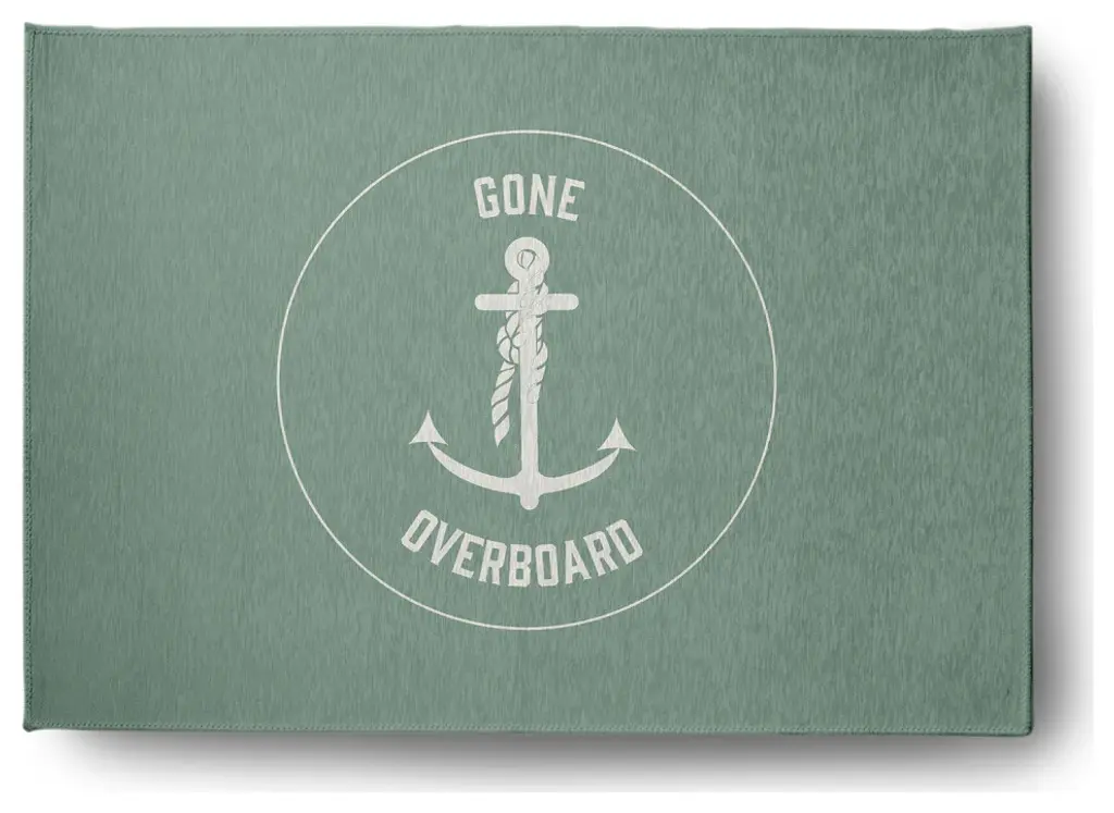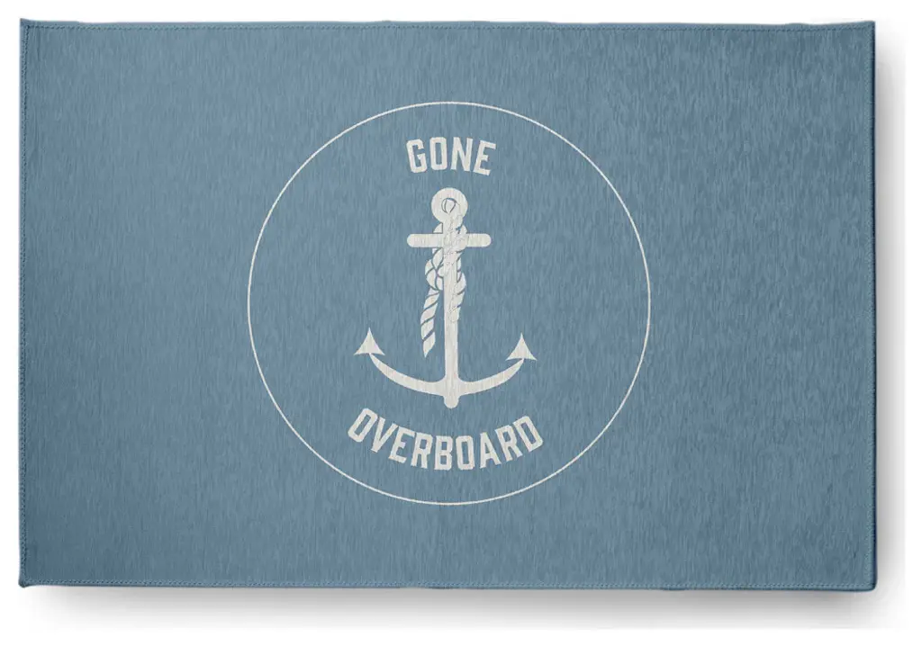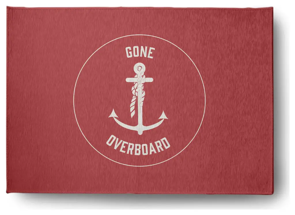 Bring the Seaside to your home decor with the Gone Forever Overboard Indoor/outdoor Rug from our Nautical Nights Collection. Everyone will delight in the space defining design brought to your porch, patio, kitchen, or bathroom by this area rug. The artistic and colorful design is printed on a soft polyester base with a skid resistant backing, making it a perfect way to add color, flare and personality to any indoor or outdoor space. To clean, use a mild soap and lay flat to dry.Soft underfoot, made of textured ChenilleStylish and functional to enliven your outdoor d?corSerged edgesCoated skid-resistant backingQuick-dry constructionStiff, lay-flat design