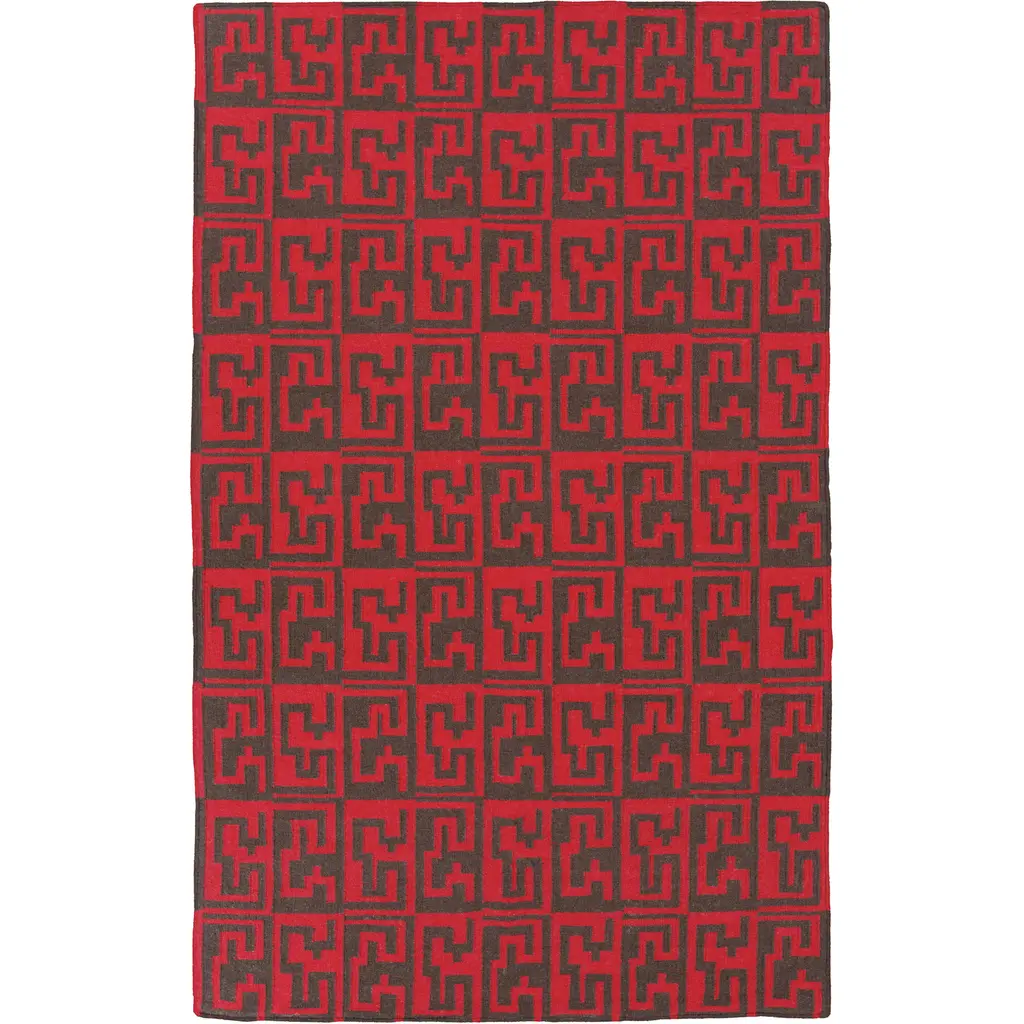 4' X 6' Greek Key Patterned Indoor/outdoor Rug, Ligonberry Red