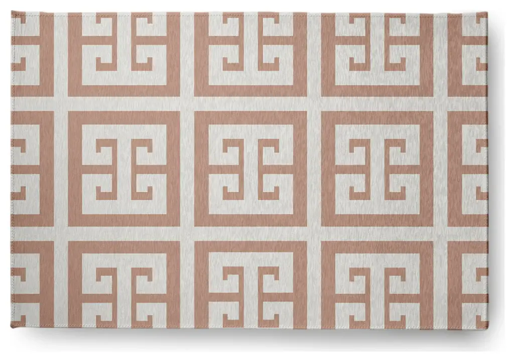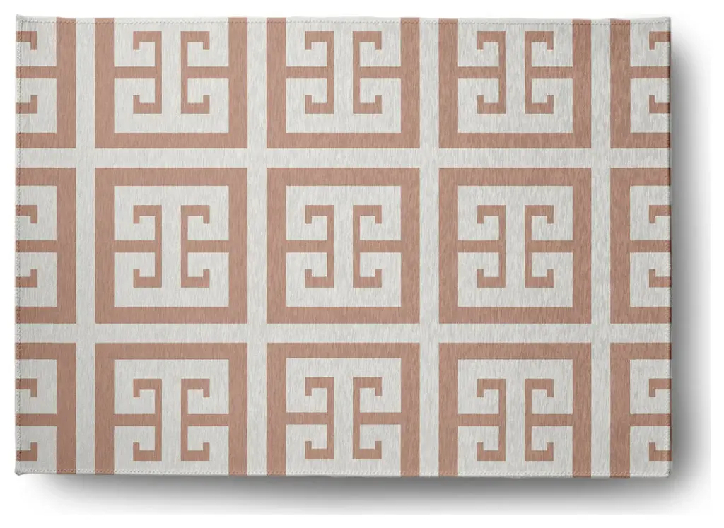 Complete your look with a Greek Key Patterned Indoor/outdoor Rug from our Subline Collection. Everyone will delight in the space defining design brought to your porch, patio, kitchen, or bathroom by this area rug. The artistic and colorful design is printed on a soft polyester base with a skid resistant backing, making it a perfect way to add color, flare and personality to any indoor or outdoor space. To clean, use a mild soap and lay flat to dry.Soft underfoot, made of textured ChenilleStylish and functional to enliven your outdoor d?corSerged edgesCoated skid-resistant backingQuick-dry constructionStiff, lay-flat design