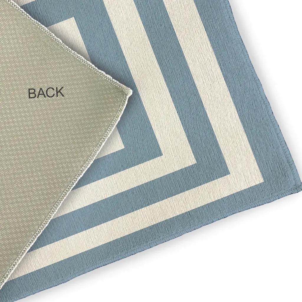 Create a cool coastal environment in your home with a Greek New Key Indoor/outdoor Rug from the Nantucket Collection. Everyone will delight in the space defining design brought to your porch, patio, kitchen, or bathroom by this area rug. The artistic and colorful design is printed on a soft polyester base with a skid resistant backing, making it a perfect way to add color, flare and personality to any indoor or outdoor space. To clean, use a mild soap and lay flat to dry.Soft underfoot, made of textured ChenilleStylish and functional to enliven your outdoor d?corSerged edgesCoated skid-resistant backingQuick-dry constructionStiff, lay-flat design