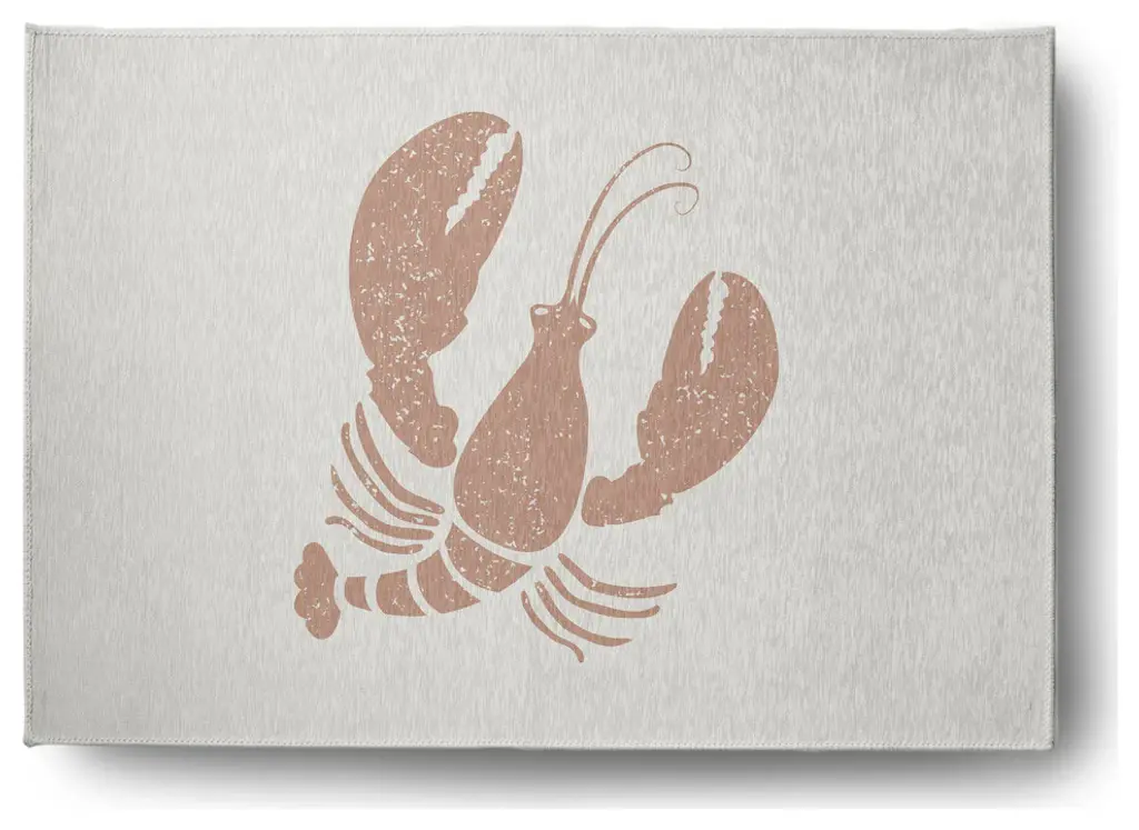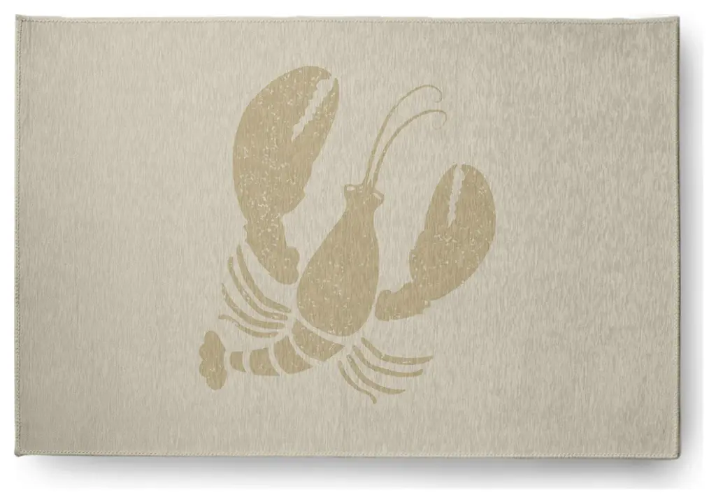Bring the Seaside to your home decor with the Lobster Indoor/outdoor Rug from our Nautical Nights Collection. Everyone will delight in the space defining design brought to your porch, patio, kitchen, or bathroom by this area rug. The artistic and colorful design is printed on a soft polyester base with a skid resistant backing, making it a perfect way to add color, flare and personality to any indoor or outdoor space. To clean, use a mild soap and lay flat to dry.Soft underfoot, made of textured ChenilleStylish and functional to enliven your outdoor d?corSerged edgesCoated skid-resistant backingQuick-dry constructionStiff, lay-flat design