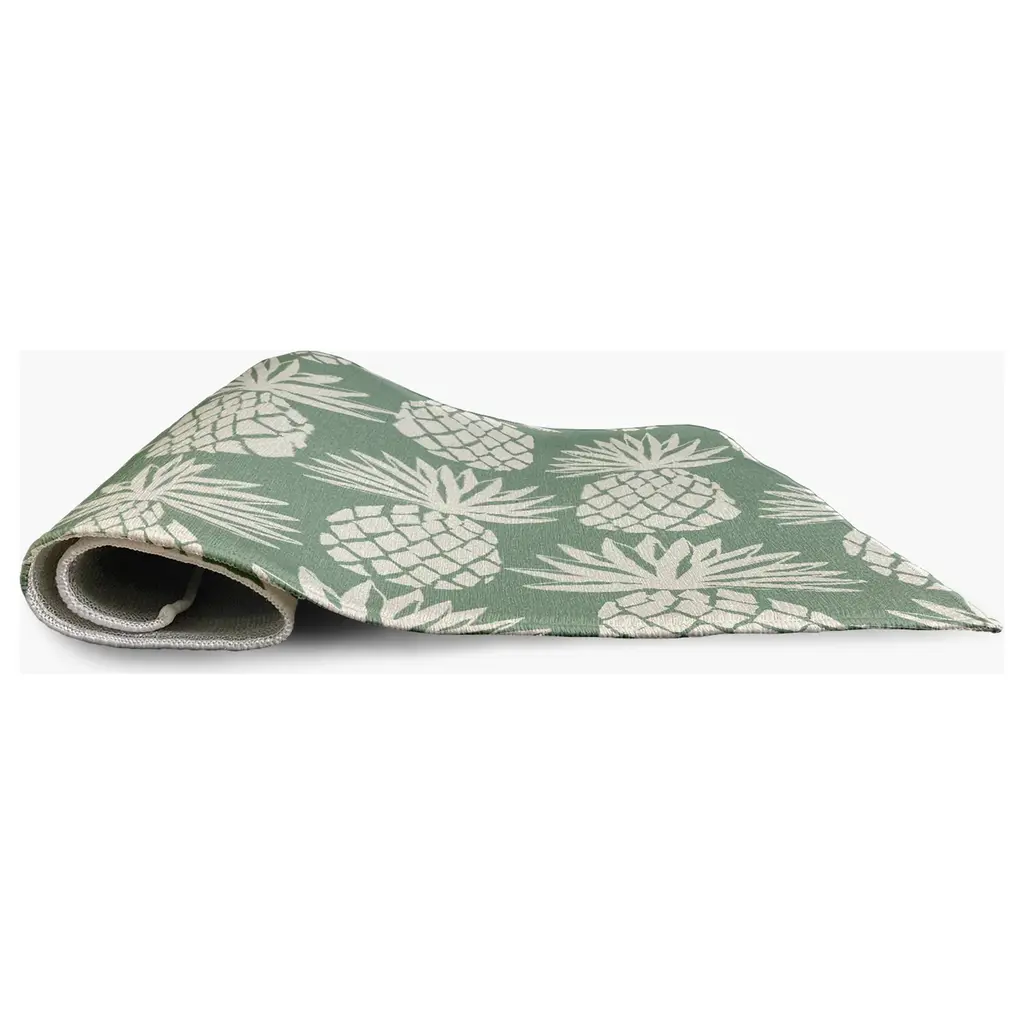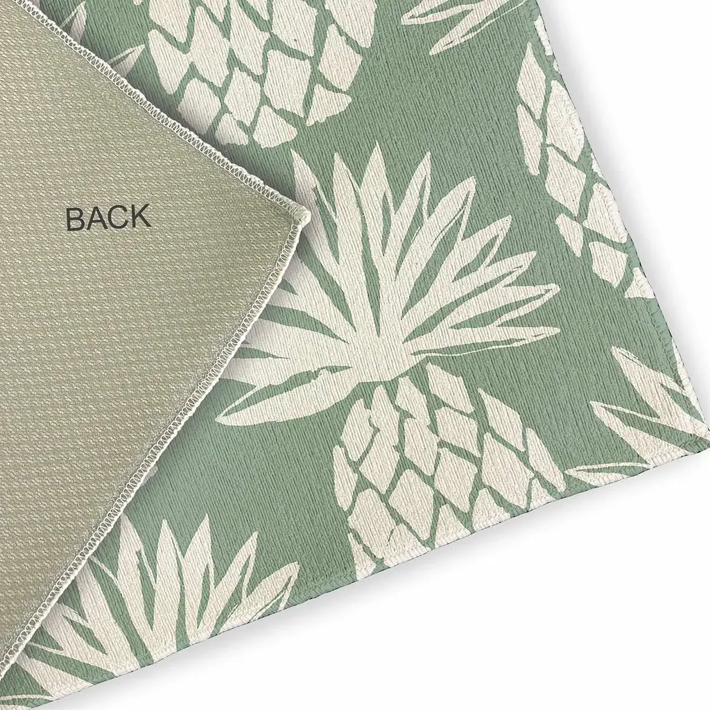 Add a floral touch to enhance your home decor with a Pineapple Pattern Indoor/outdoor Rug from our Botanical Blooms Collection. Everyone will delight in the space defining design brought to your porch, patio, kitchen, or bathroom by this area rug. The artistic and colorful design is printed on a soft polyester base with a skid resistant backing, making it a perfect way to add color, flare and personality to any indoor or outdoor space. To clean, use a mild soap and lay flat to dry.Soft underfoot, made of textured ChenilleStylish and functional to enliven your outdoor d?corSerged edgesCoated skid-resistant backingQuick-dry constructionStiff, lay-flat design