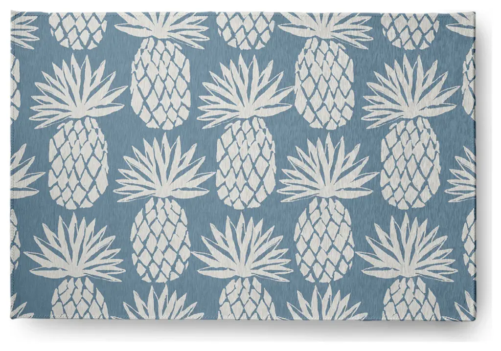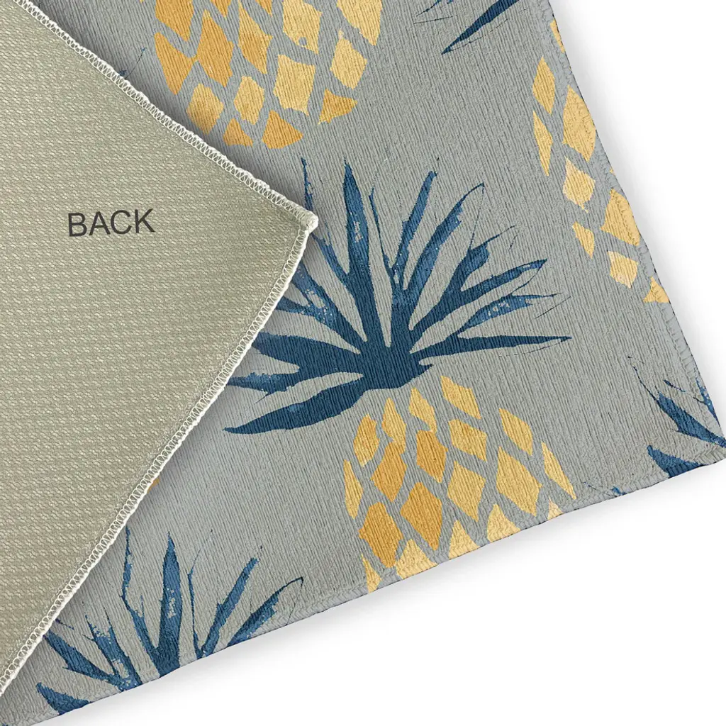 Create a lively tropical spirit and an inviting breezy atmosphere in your home with a Pineapple Stripes Indoor/outdoor Rug from our Tropical Resort Collection. Everyone will delight in the space defining design brought to your porch, patio, kitchen, or bathroom by this area rug. The artistic and colorful design is printed on a soft polyester base with a skid resistant backing, making it a perfect way to add color, flare and personality to any indoor or outdoor space. To clean, use a mild soap and lay flat to dry.Soft underfoot, made of textured ChenilleStylish and functional to enliven your outdoor d?corSerged edgesCoated skid-resistant backingQuick-dry constructionStiff, lay-flat design