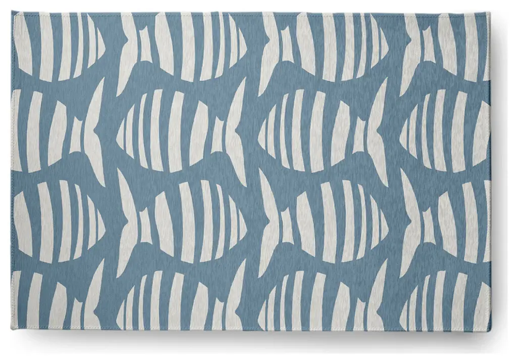 4' X 6' Puzzle Fish Nautical Indoor/outdoor Rug, Dusty Smoke