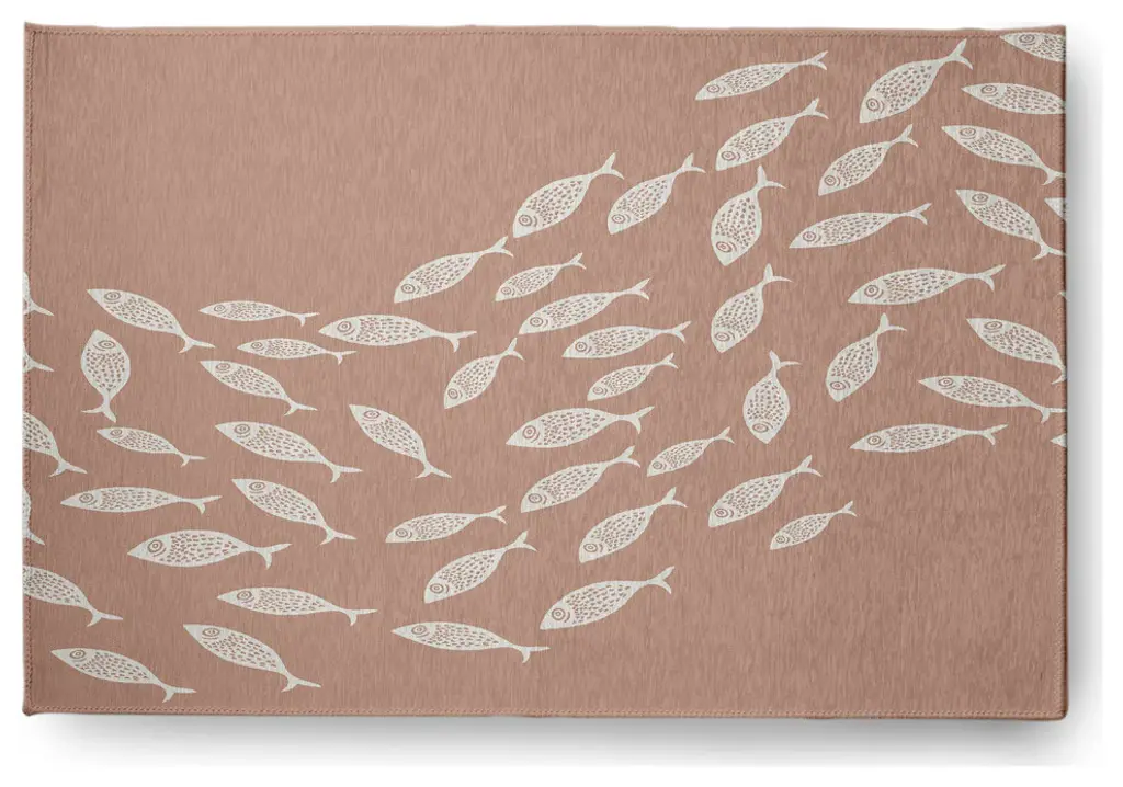 4' X 6' Puzzle Fish Nautical Indoor/outdoor Rug, Mauve