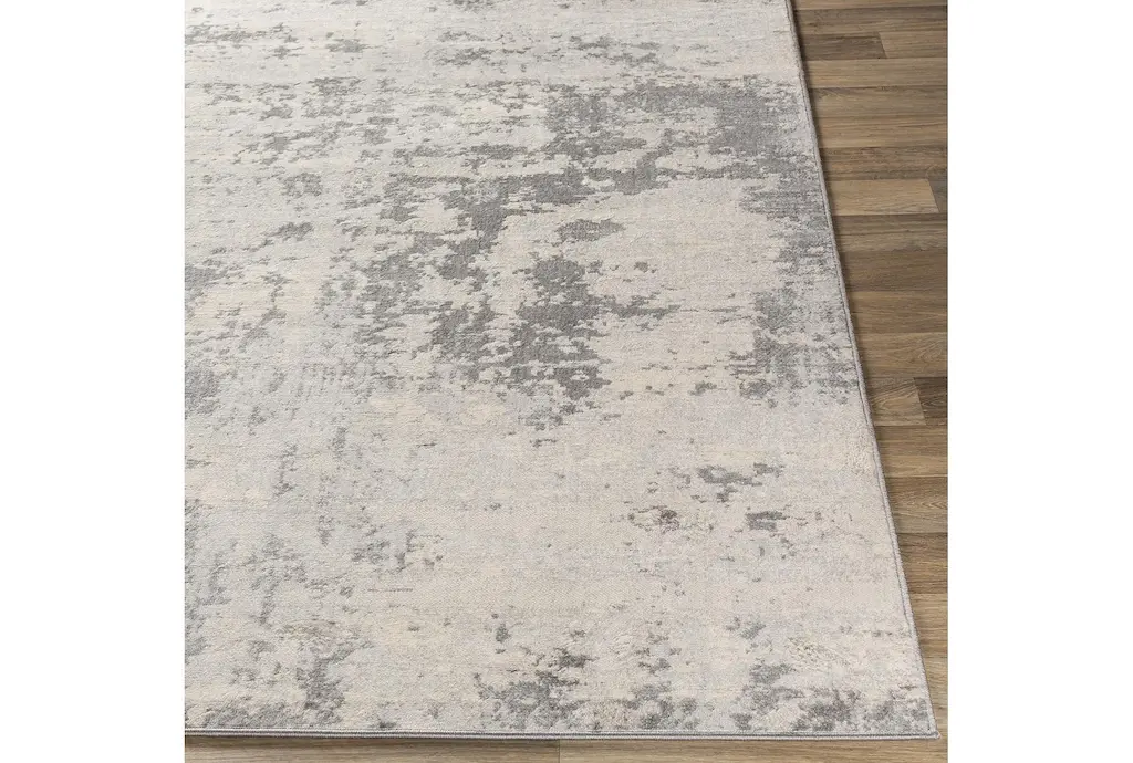 Enhance your living space with the 4'3"x5'9" Fiber Rug by Surya. This modern, abstract rug features a subtle blend of silver grey, medium grey, and cream colors, making it a versatile addition to any room. Crafted from 100% polypropylene, it offers durability and a soft touch suitable for indoor use.