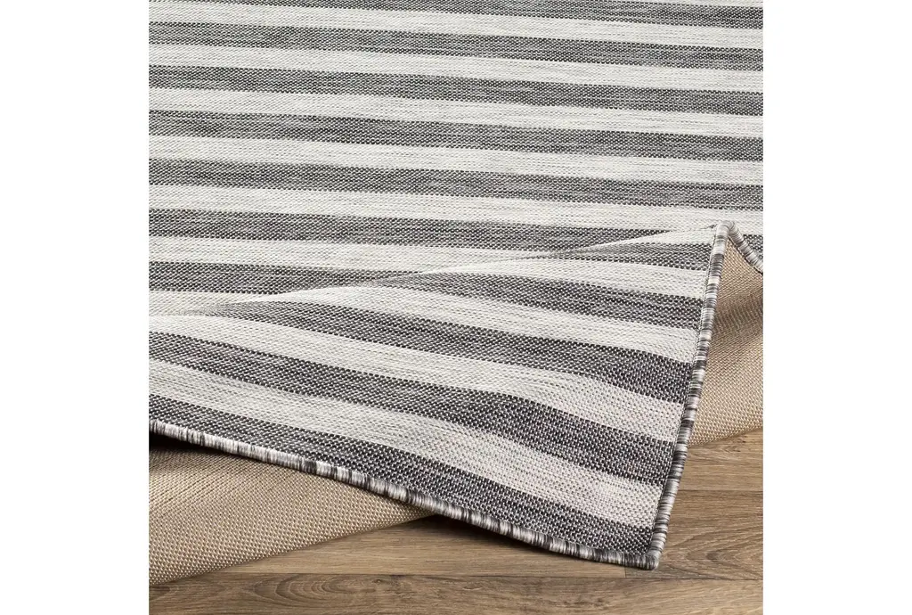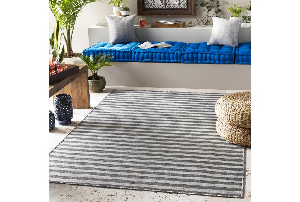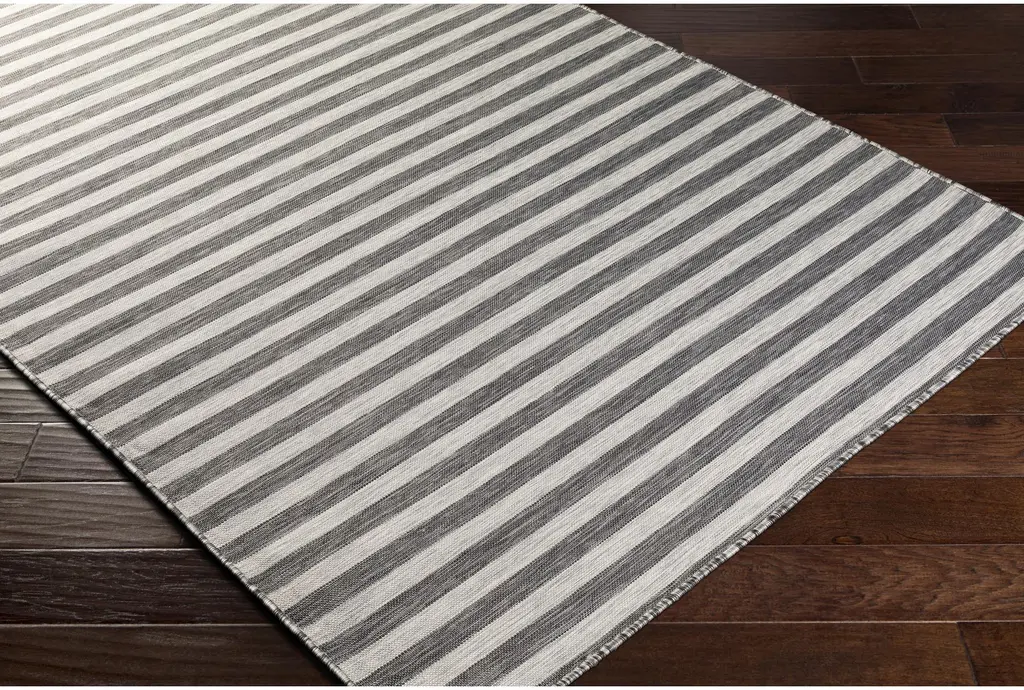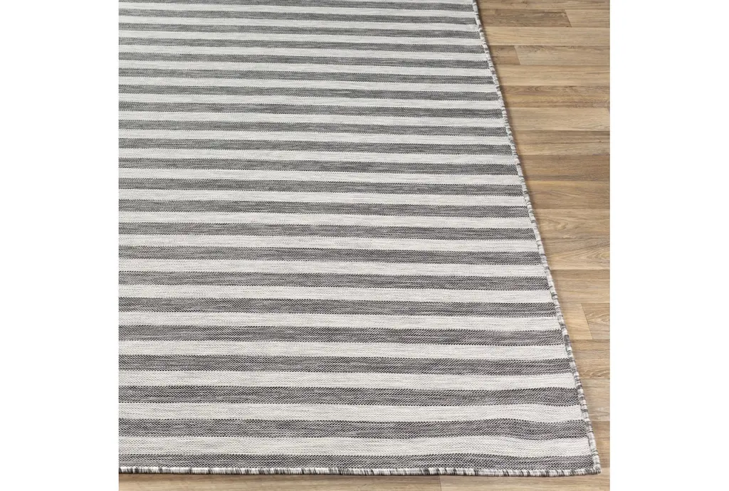 4'3"x6' Indoor/outdoor Fiber Rug-Light Grey & White Thin Stripe | Low Pile | Rectangle By Surya