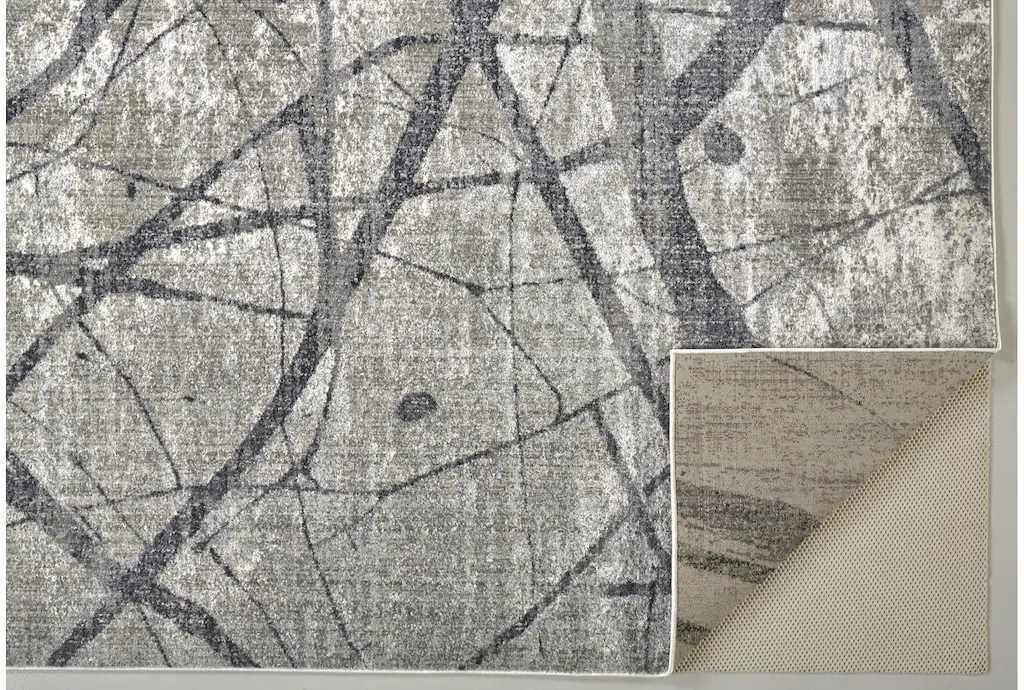 Enhance your living space with the 4'3"x6'3" Natural Abstract Charcoal/Grey Rug. This casual, geometric design in a neutral palette is perfect for any indoor setting. The low pile ensures easy maintenance and a sleek look.