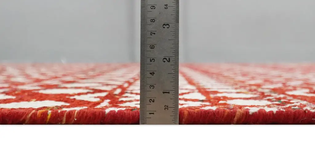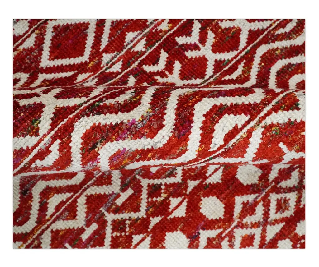 This Hand-Knotted Rug has been Made with Handspun Recycled Silk. The beautiful colors of the rug and the modern design of the rug complete your space without making it look busy. Hand-Knotted rugs are durable and can last for decades if treated right. Fine Hand-Knotted 3 feet 11 Inch by 6 feet Rug Hand-Knotted 9 feet and 12 feet Rug Made with Recycled Silk Color: Rust and White Made with 22 knots per square inch This specific rug is made in India, in the city of Bhadohi. Bhadohi is one of the biggest rug manufacturing cities. Carpet weaving in the region dates back to the 16th century during the reign of Akbar. The skilled artisans of Bhadohi have been carrying the tradition of rug-making for centuries. USERS GUIDE Avoid prolonged moisture Vacuum regularly and/or shake to remove dust Do not pull any loose threads. Use scissors to simply cut the ends Blot spills immediately with a white cloth. Harsh chemicals may damage or fade the rug Use rug protectors under heavy furniture