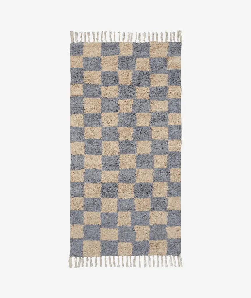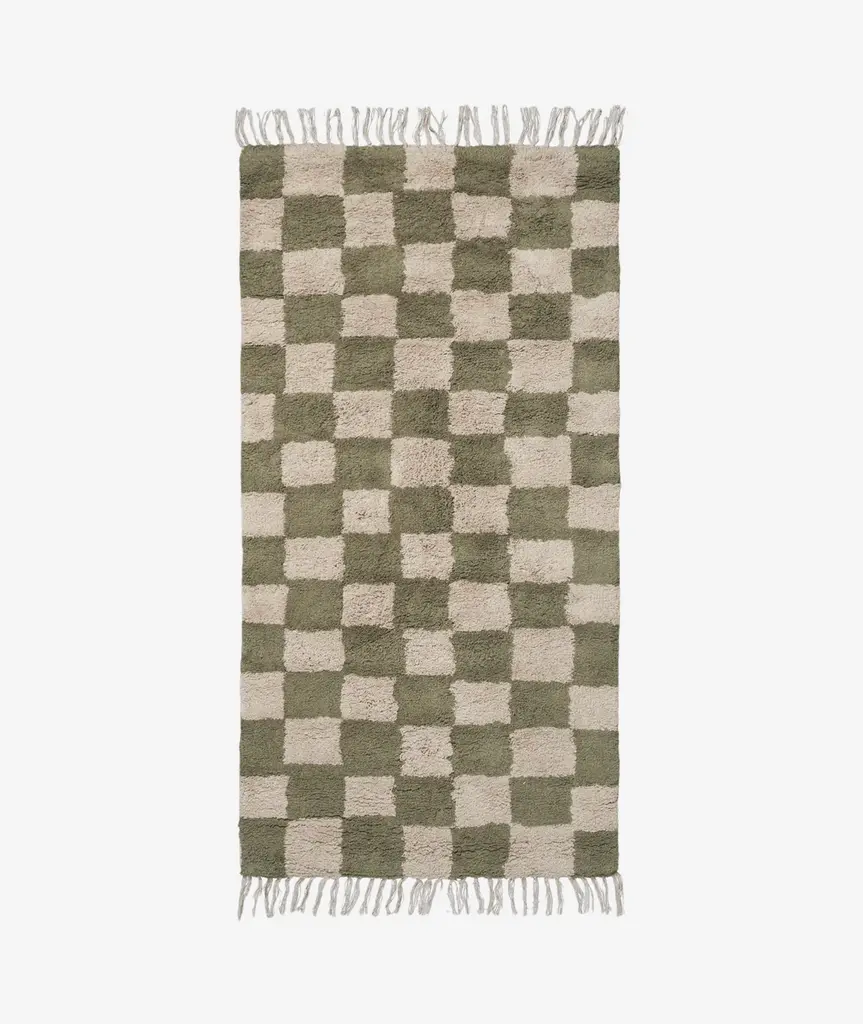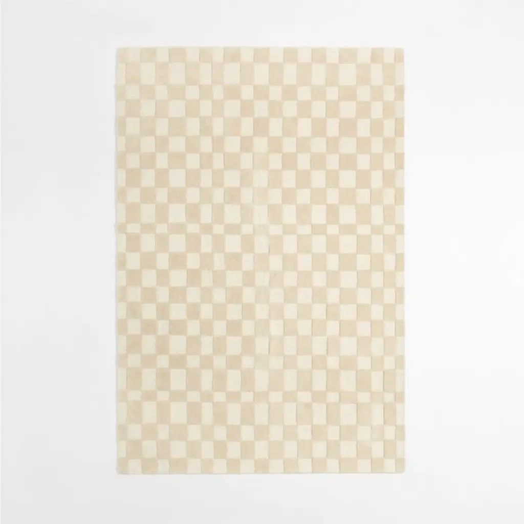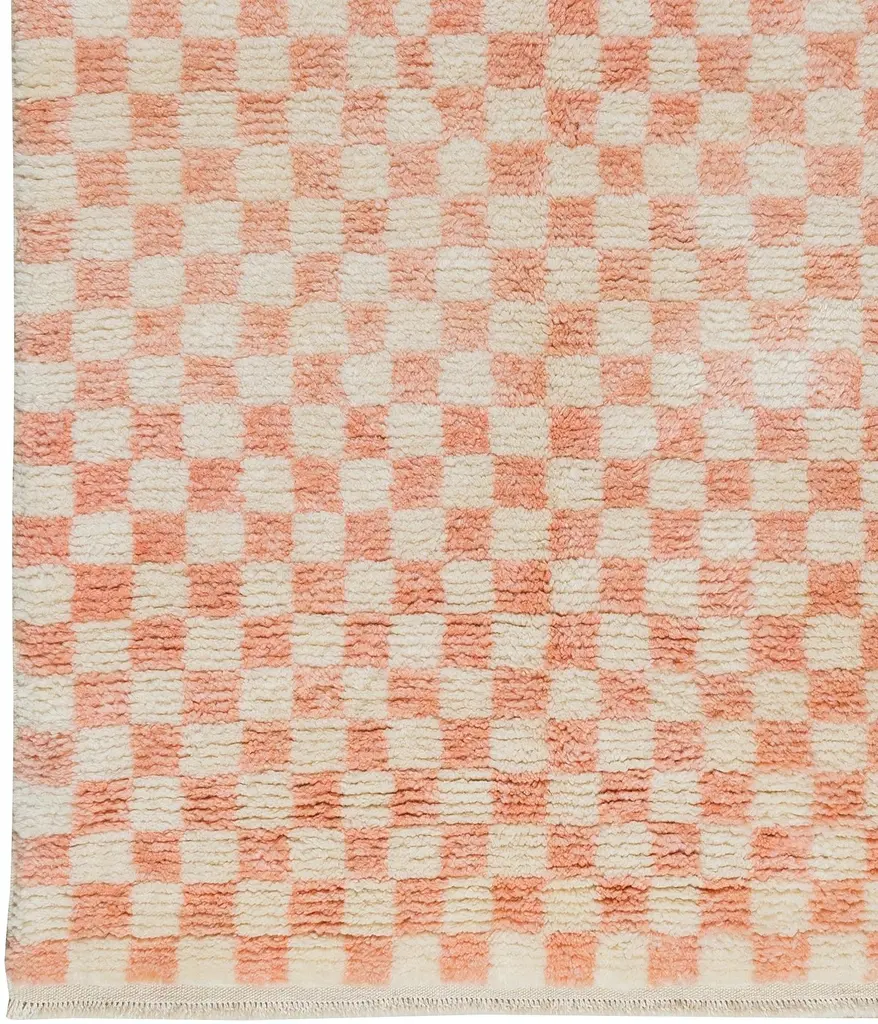 4X6 Ft Handmade Checkered Design Tulu Rug In Soft Pink & Beige. 100% Wool