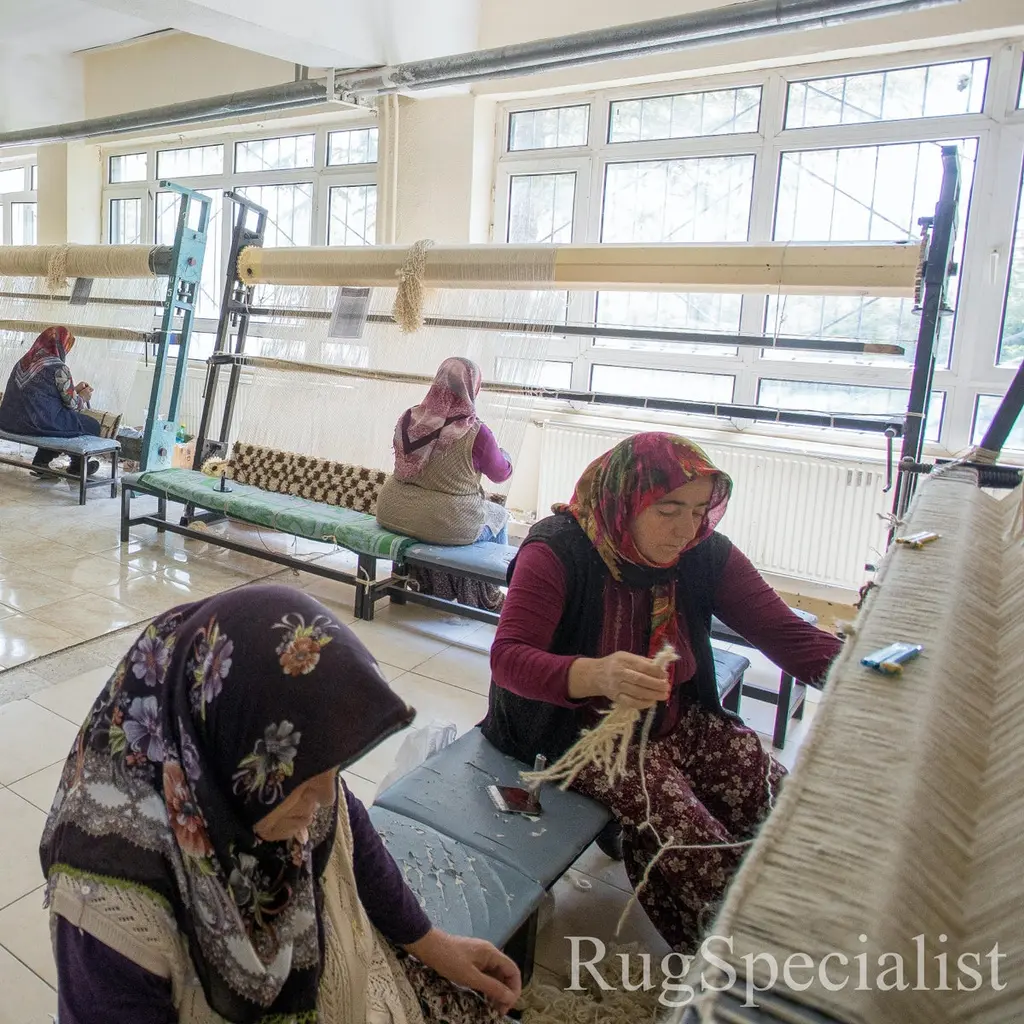 100% Hand-spun wool of finest quality. Measures : 4x6 ft.Available as seen or can be custom produced in any design, size, color combination and pile thickness requested.These beautiful hand knotted rugs are produced from scratch in our atelier located in Central Anatolia, famous for being one of the world's oldest handmade rug making centers.All our weavers are adult female artisans who inherited carpet weaving tradition from their mothers and grandmothers and are highly skillful in the subject.The designs are based on or inspired from vintage Moroccan Berber, Beni Ouarain and Azilal carpets or Turkish "Tulu" Rugs.It takes 3 weavers approximately 5 weeks to produce one of these rugs from scratch depending on the Size.