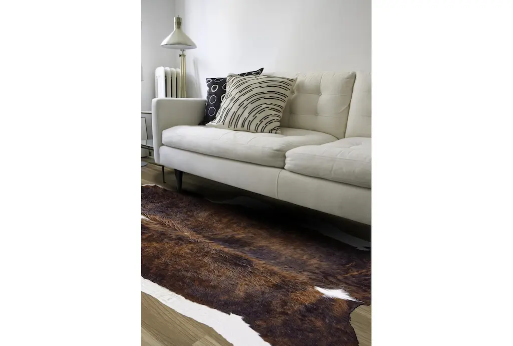 Transform your living space with the 4'x6' Rug-Oscar, featuring an exotic dark cowhide leather design. This rustic area rug is perfect for adding a touch of natural beauty to any indoor room. Enjoy the low pile that makes it easy to maintain while providing a cozy feel underfoot.