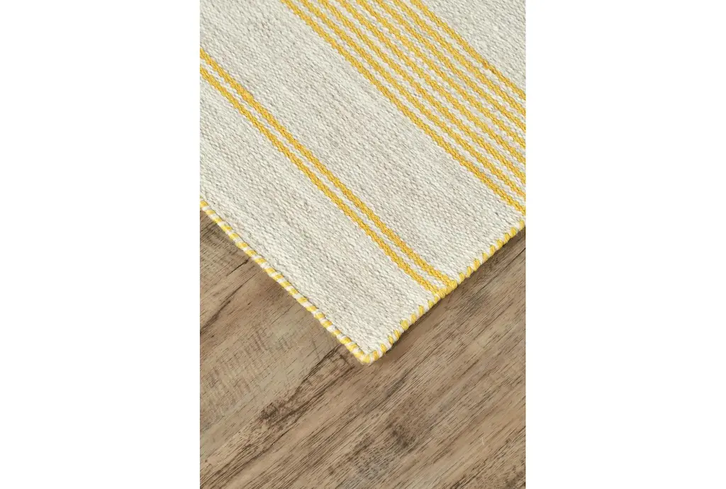 4'x6' Rug-Recycled Pet Fiber Gold Pin Stripes | Layering | Eco-Friendly | Low Pile | Rectangle