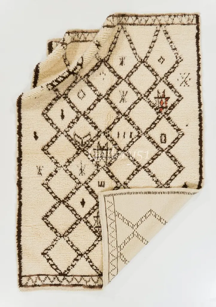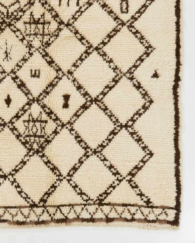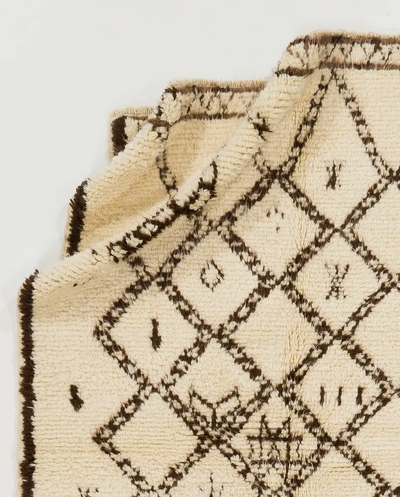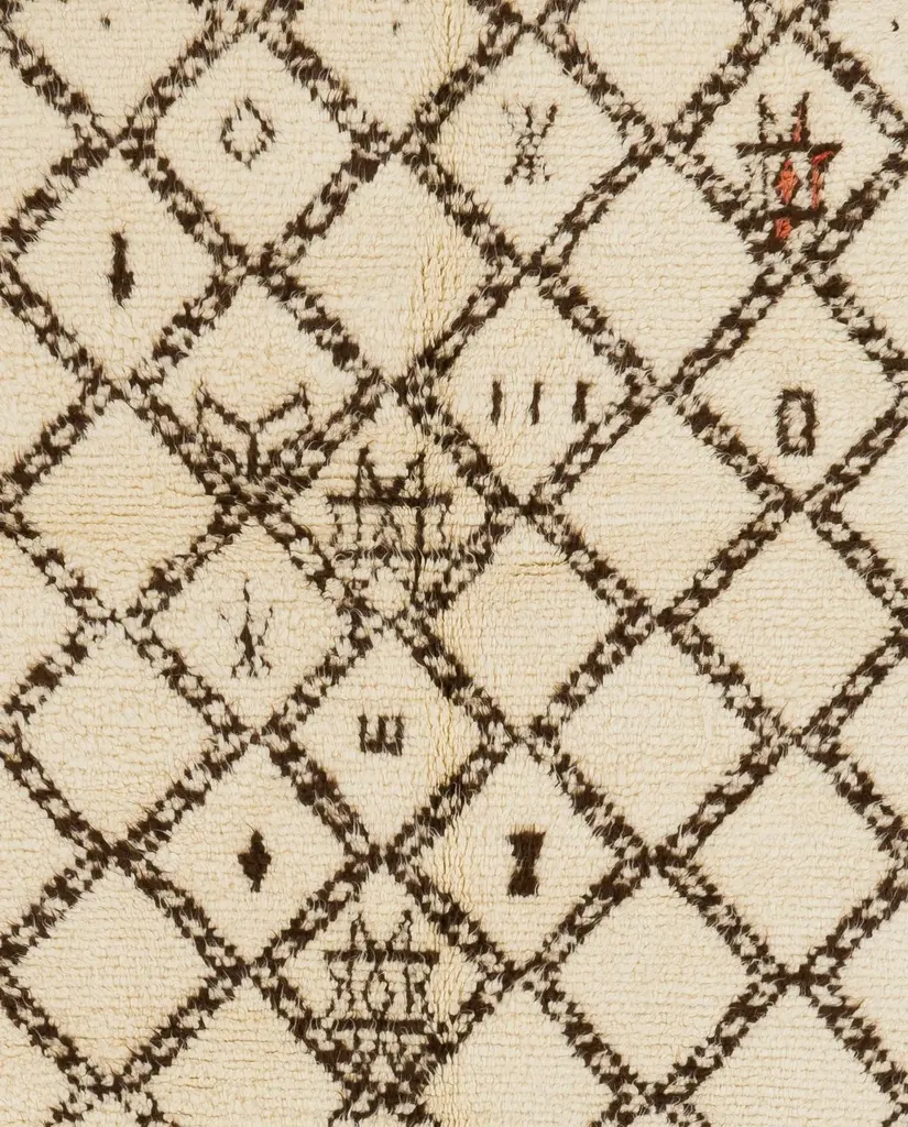 Transform your space with the understated luxury of our Moroccan-style hand-knotted Tulu rug, inspired by the heritage-rich designs of the Beni Ourain tribes. This rug is a celebration of craftsmanship and tradition, entirely handmade by skilled artisans using 100% natural wool, offering both exceptional quality and timeless character.✨ What makes this rug special?Tulu rugs are known for their plush, deep pile and irresistibly soft texture. Originally used in the cold mountainous regions of Anatolia and North Africa, Tulu rugs were crafted to provide warmth, comfort, and coziness in everyday life. Today, they are cherished for their unique, tactile quality and relaxed yet elegant aesthetic. With its organic softness and hand-tied knots, this rug brings not just decoration—but a story—into your home.Whether you're styling a modern loft, a serene minimalist bedroom, or a cozy reading nook, this piece will anchor your space with texture, tradition, and soul. Its clean lines and contemporary interpretation of tribal design make it a versatile addition to nearly any interior style—boho, Nordic, Japandi, or eclectic.🧵 Product Details:📏 Size: 5.4 x 7.7 Ft (162 x 232 cm)🧶 Material: 100% Natural Wool✋ Technique: Hand-knotted by skilled artisans🛠️ Construction: Fully handmade using traditional methods🦶 Feel: Soft underfoot🌍 Origin: Handmade by master weavers in a traditional workshop🛡️ Durable and made to last for years🧼 Care: Vacuum regularly; professional cleaning recommended🎨 Looking for a different size or color?🧵 We offer custom orders! Whether you need a different size 📏, pile height 🪡, or a unique color combination 🌈, we are happy to create a bespoke rug just for you.📩 Feel free to message us with your requirements – we’d love to help you bring your vision to life!