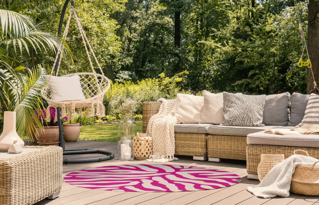 Beautify your home with a Animal Stripe Indoor/outdoor Rug from our Flora & Fauna Collection. Everyone will delight in the space defining design brought to your porch, patio, kitchen, or bathroom by this area rug. The artistic and colorful design is printed on a soft polyester base with a skid resistant backing, making it a perfect way to add color, flare and personality to any indoor or outdoor space. To clean, use a mild soap and lay flat to dry.