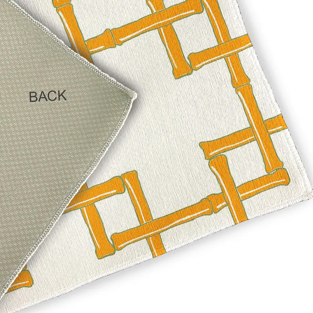 Add a floral touch to enhance your home decor with a Bamboo Indoor/outdoor Rug from our Botanical Blooms Collection. Everyone will delight in the space defining design brought to your porch, patio, kitchen, or bathroom by this area rug. The artistic and colorful design is printed on a soft polyester base with a skid resistant backing, making it a perfect way to add color, flare and personality to any indoor or outdoor space. To clean, use a mild soap and lay flat to dry.