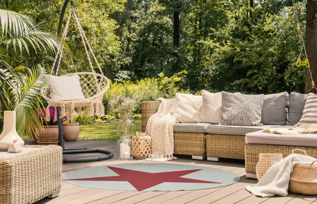 Enjoy a new style this season with a Big Star Indoor/outdoor Rug from our Funky Junky Collection. Everyone will delight in the space defining design brought to your porch, patio, kitchen, or bathroom by this area rug. The artistic and colorful design is printed on a soft polyester base with a skid resistant backing, making it a perfect way to add color, flare and personality to any indoor or outdoor space. To clean, use a mild soap and lay flat to dry.Soft underfoot, made of textured ChenilleStylish and functional to enliven your outdoor d?corSerged edgesCoated skid-resistant backingQuick-dry constructionStiff, lay-flat design