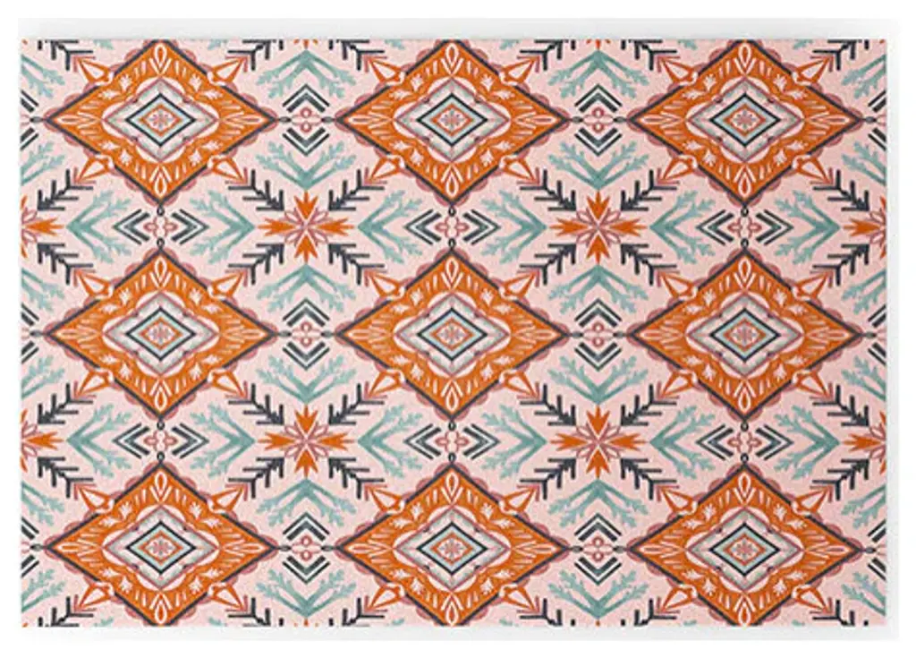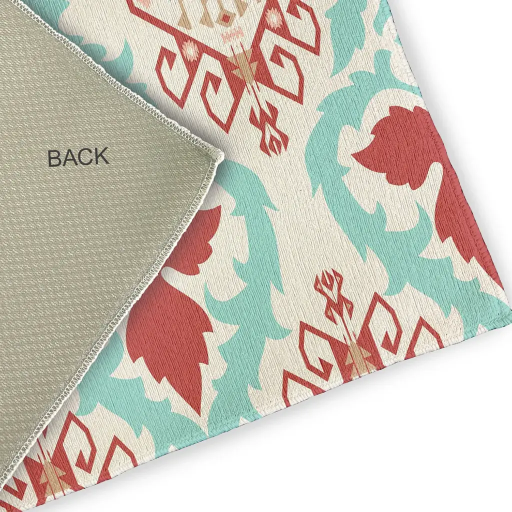Create a colorful and radiant vibe around your home with the Bombay Indoor/outdoor Rug from our Happy Hippy Collection. Everyone will delight in the space defining design brought to your porch, patio, kitchen, or bathroom by this area rug. The artistic and colorful design is printed on a soft polyester base with a skid resistant backing, making it a perfect way to add color, flare and personality to any indoor or outdoor space. To clean, use a mild soap and lay flat to dry.
