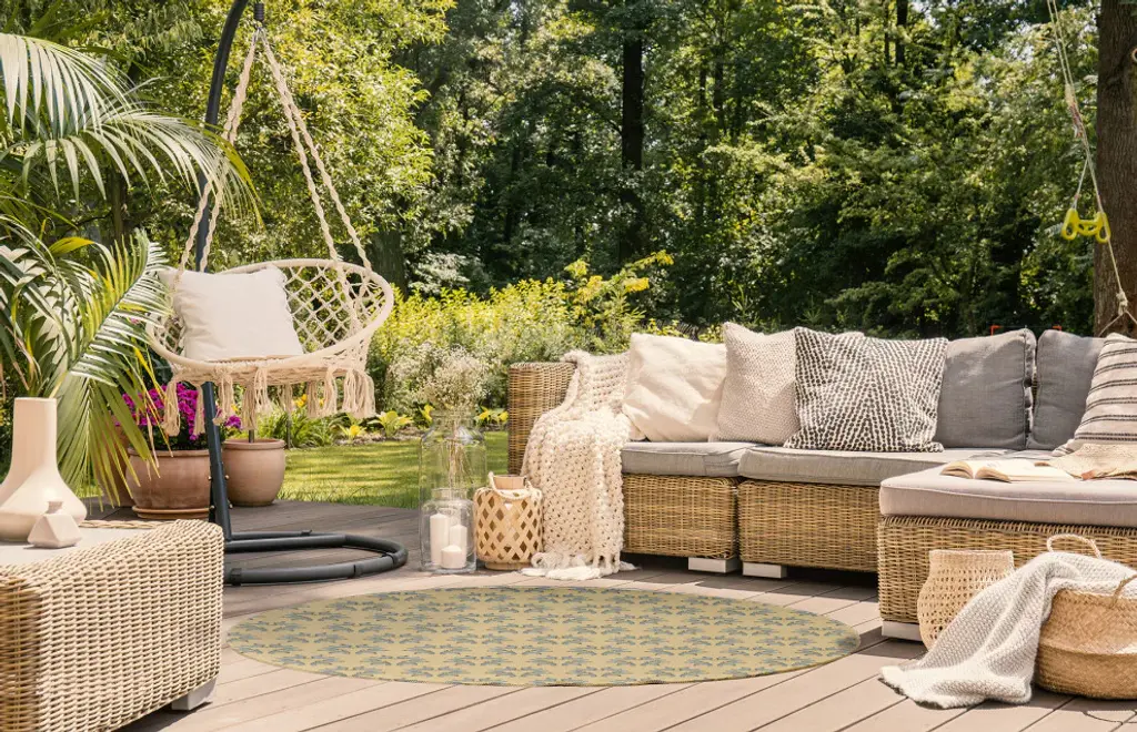Enjoy a new style this season with a Chickens-go-round Indoor/outdoor Rug from our Funky Junky Collection. Everyone will delight in the space defining design brought to your porch, patio, kitchen, or bathroom by this area rug. The artistic and colorful design is printed on a soft polyester base with a skid resistant backing, making it a perfect way to add color, flare and personality to any indoor or outdoor space. To clean, use a mild soap and lay flat to dry.