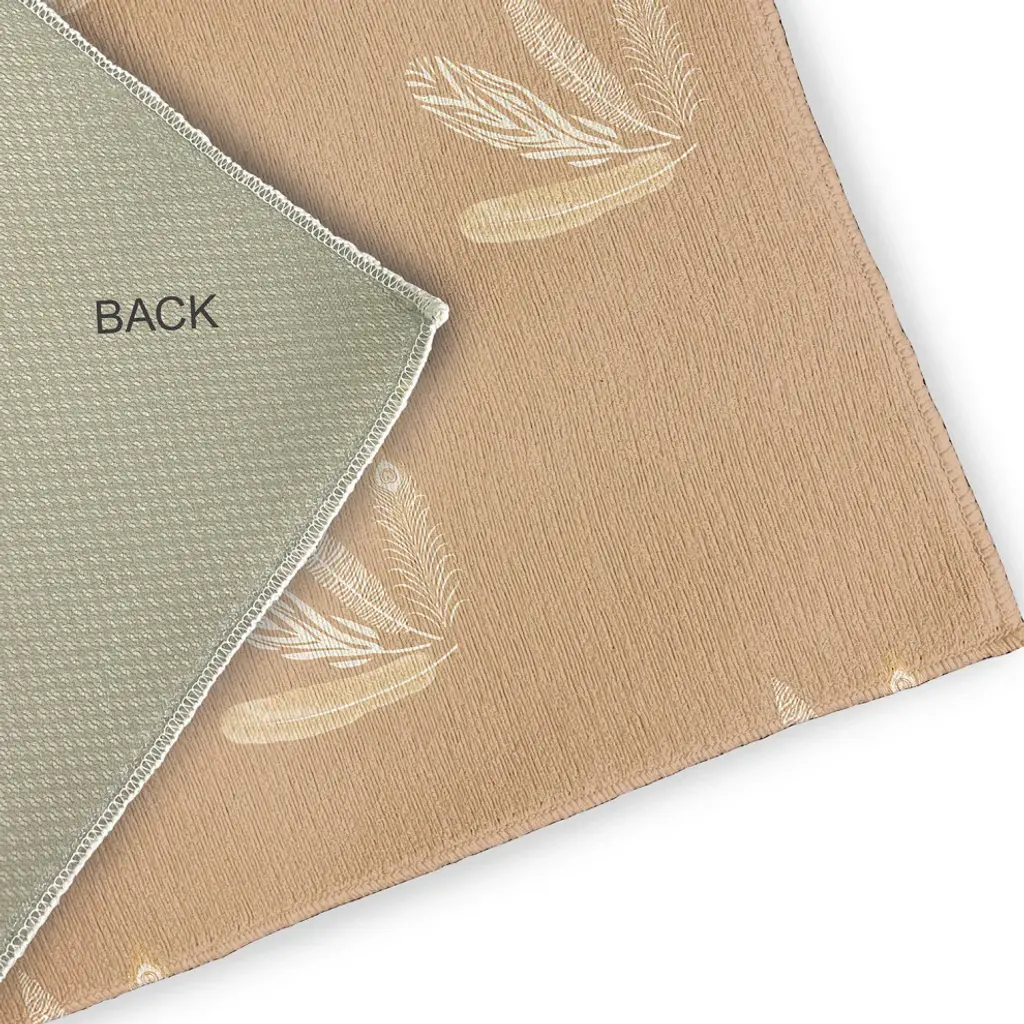 Liven up your decor with our trendy Feather Pattern Indoor/outdoor Rug from our Goals, Gourds, and Gathering Collection. Everyone will delight in the space defining design brought to your porch, patio, kitchen, or bathroom by this area rug. The artistic and colorful design is printed on a soft polyester base with a skid resistant backing, making it a perfect way to add color, flare and personality to any indoor or outdoor space. To clean, use a mild soap and lay flat to dry.