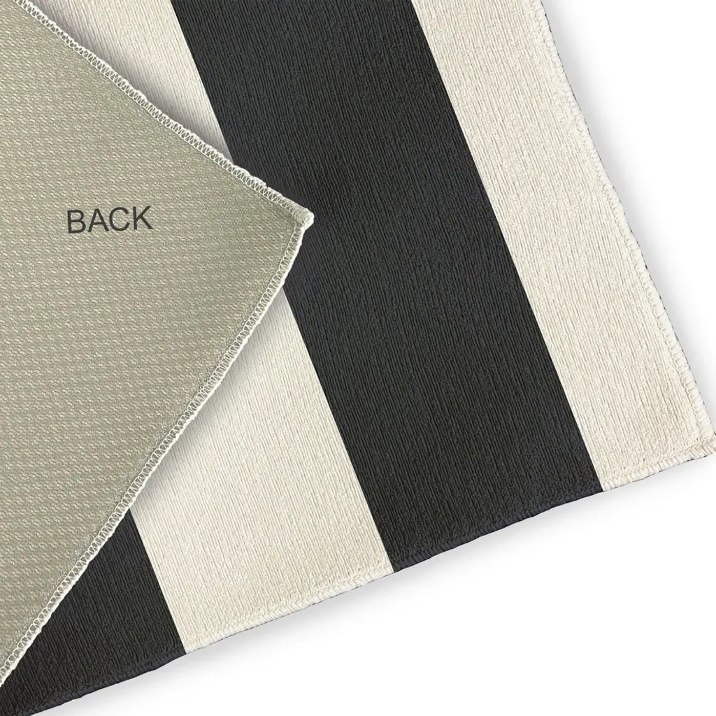 Create a colorfully casual look to your home decor with a Graduated Stripe Indoor/outdoor Rug from our Stripe a Balance Collection. Everyone will delight in the space defining design brought to your porch, patio, kitchen, or bathroom by this area rug. The artistic and colorful design is printed on a soft polyester base with a skid resistant backing, making it a perfect way to add color, flare and personality to any indoor or outdoor space. To clean, use a mild soap and lay flat to dry.Soft underfoot, made of textured ChenilleStylish and functional to enliven your outdoor d?corSerged edgesCoated skid-resistant backingQuick-dry constructionStiff, lay-flat design
