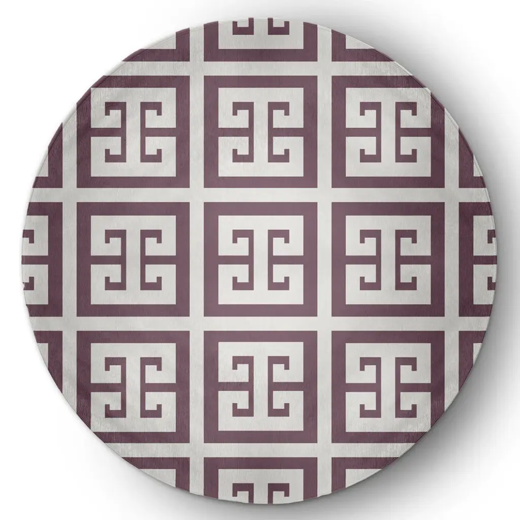 5' Round Greek Key Patterned Indoor/outdoor Rug, Ligonberry Red