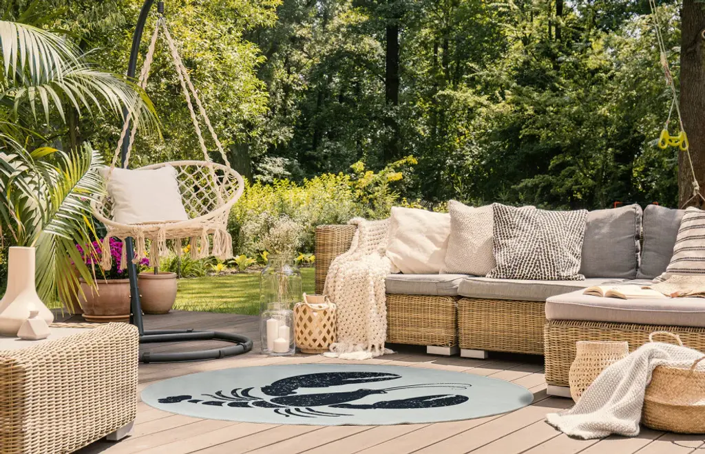 Bring the Seaside to your home decor with the Lobster Indoor/outdoor Rug from our Nautical Nights Collection. Everyone will delight in the space defining design brought to your porch, patio, kitchen, or bathroom by this area rug. The artistic and colorful design is printed on a soft polyester base with a skid resistant backing, making it a perfect way to add color, flare and personality to any indoor or outdoor space. To clean, use a mild soap and lay flat to dry.Soft underfoot, made of textured ChenilleStylish and functional to enliven your outdoor d?corSerged edgesCoated skid-resistant backingQuick-dry constructionStiff, lay-flat design