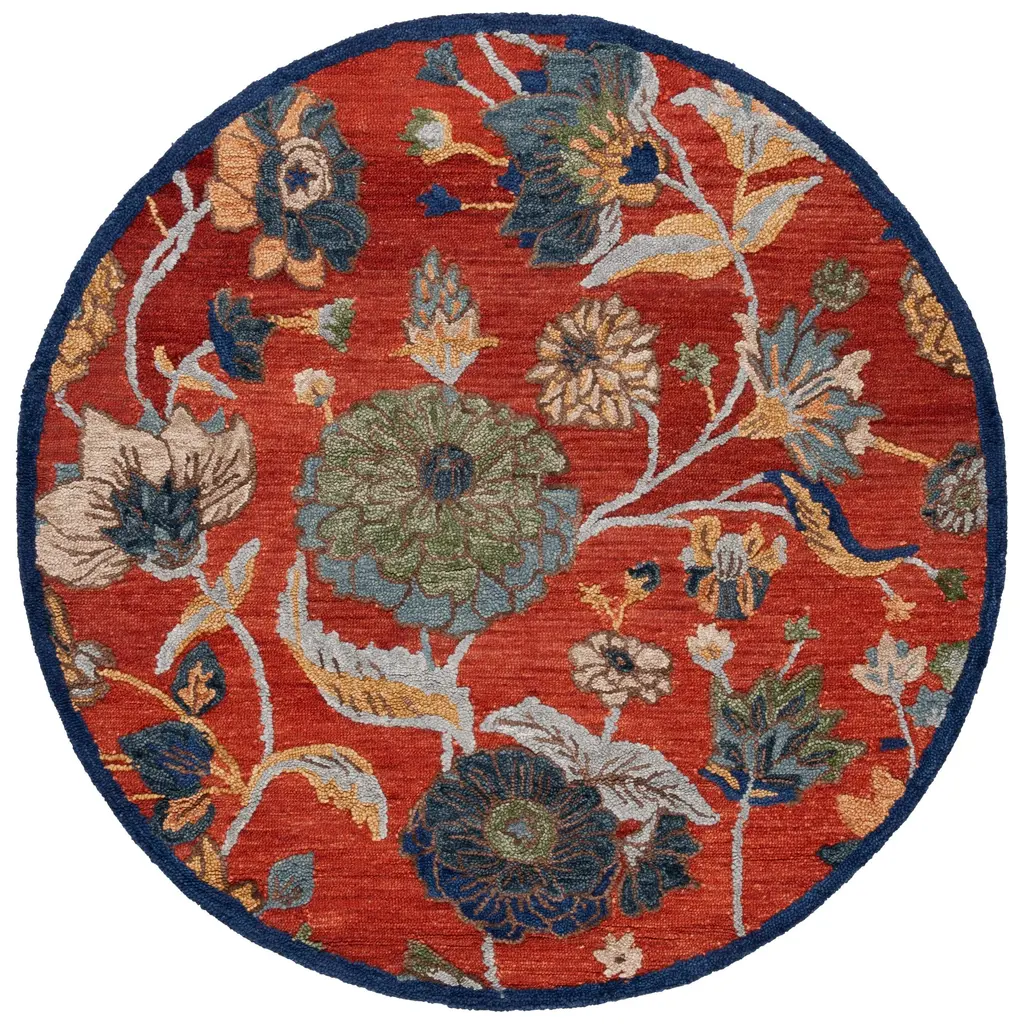 Brighten up the dynamic aesthetics of your outdoor patio or indoor space with this stunning Round Multicolor Indoor Outdoor Area Rug. With pops of color in vivid shades of yellow, orange, blue, and ivory, this rug showcases detailed floral work emanating a Bohemial touch with a modern impression. Machine-made in Turkey with durable polypropylene for prolonged stain resistance with low maintenance. The high-low cut pile construction adds a dimension to the surface texture that looks lavish, providing a soft and comfortable underfoot. The vibrant color palette of this round area rug evokes a sense of happiness and sets up an inviting tone to welcome the guests. 5''3"