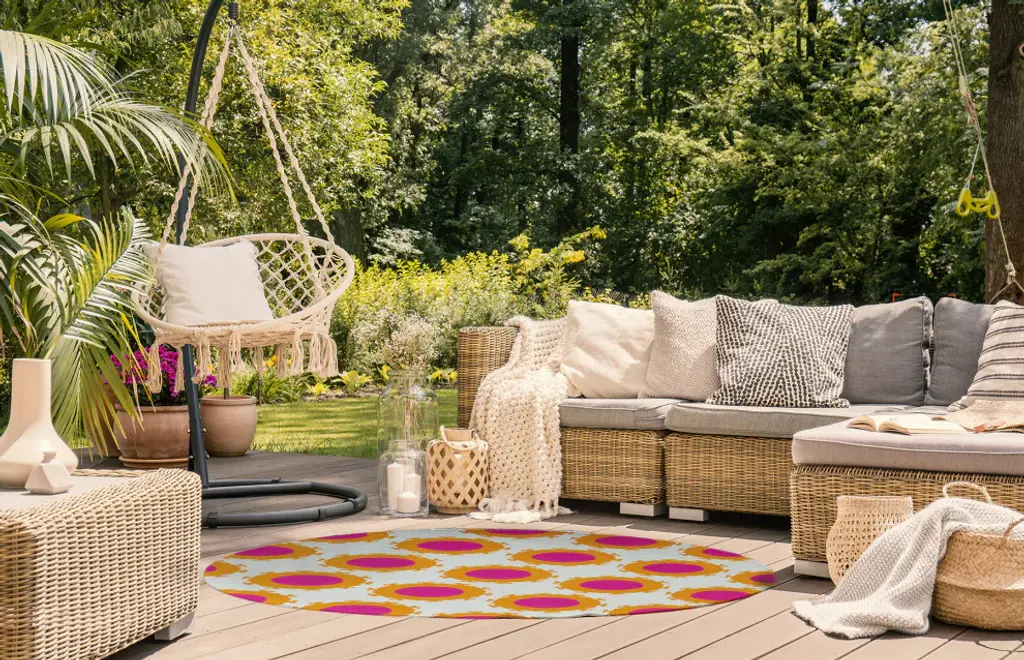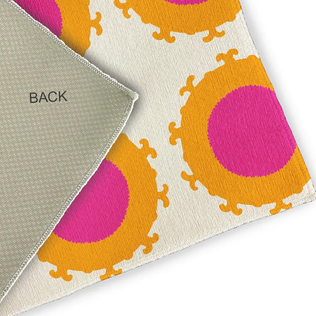 Enjoy a new style this season with a Pan Bubbles Indoor/outdoor Rug from our Funky Junky Collection. Everyone will delight in the space defining design brought to your porch, patio, kitchen, or bathroom by this area rug. The artistic and colorful design is printed on a soft polyester base with a skid resistant backing, making it a perfect way to add color, flare and personality to any indoor or outdoor space. To clean, use a mild soap and lay flat to dry.
