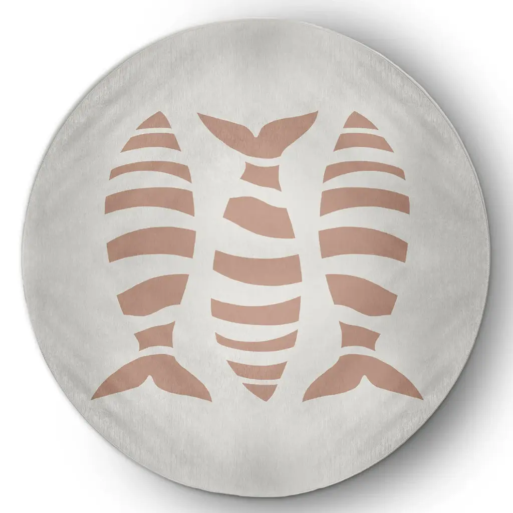 5' Round Puzzle Fish Nautical Indoor/outdoor Rug, Taupe
