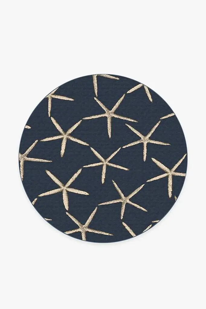 5' Round Starfish Nautical Indoor/outdoor Rug, Dusty Purple
