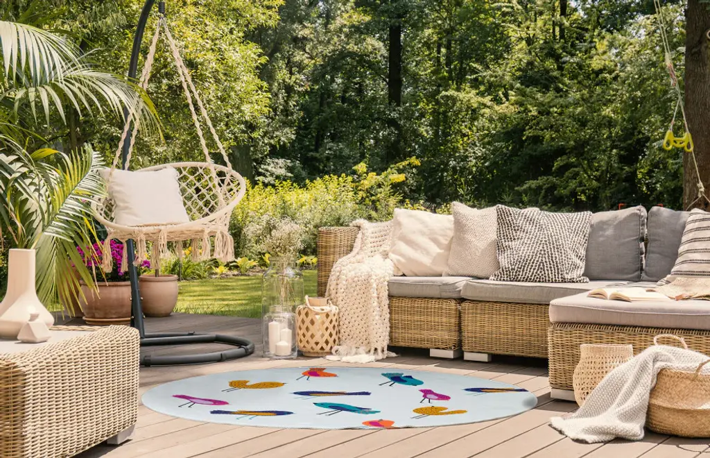 Create a lively tropical spirit and an inviting breezy atmosphere in your home with a Tweets Indoor/outdoor Rug from our Tropical Resort Collection. Everyone will delight in the space defining design brought to your porch, patio, kitchen, or bathroom by this area rug. The artistic and colorful design is printed on a soft polyester base with a skid resistant backing, making it a perfect way to add color, flare and personality to any indoor or outdoor space. To clean, use a mild soap and lay flat to dry.