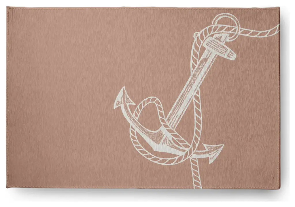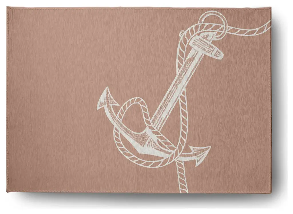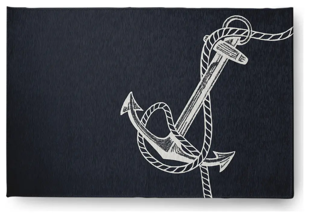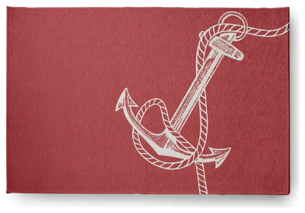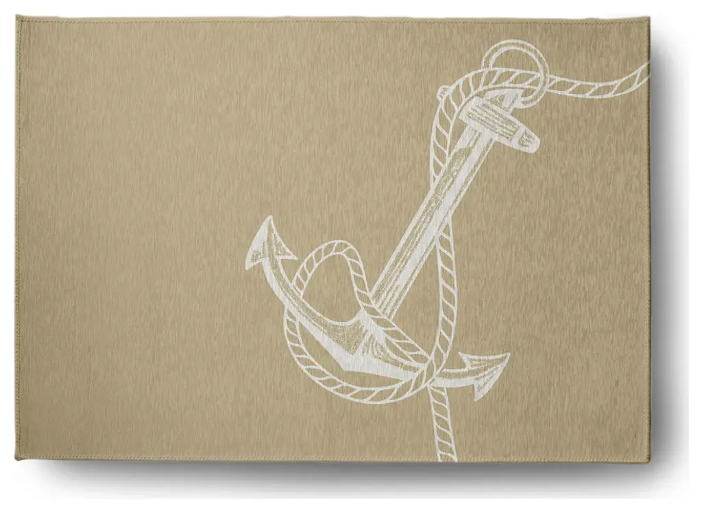 Bring the Seaside to your home decor with the Anchored Indoor/outdoor Rug from our Nautical Nights Collection. Everyone will delight in the space defining design brought to your porch, patio, kitchen, or bathroom by this area rug. The artistic and colorful design is printed on a soft polyester base with a skid resistant backing, making it a perfect way to add color, flare and personality to any indoor or outdoor space. To clean, use a mild soap and lay flat to dry.Soft underfoot, made of textured ChenilleStylish and functional to enliven your outdoor d?corSerged edgesCoated skid-resistant backingQuick-dry constructionStiff, lay-flat design