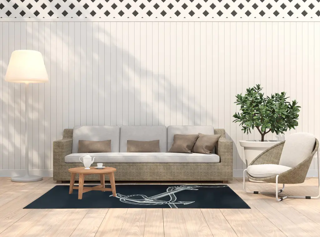 Bring the Seaside to your home decor with the Anchored Indoor/outdoor Rug from our Nautical Nights Collection. Everyone will delight in the space defining design brought to your porch, patio, kitchen, or bathroom by this area rug. The artistic and colorful design is printed on a soft polyester base with a skid resistant backing, making it a perfect way to add color, flare and personality to any indoor or outdoor space. To clean, use a mild soap and lay flat to dry.Soft underfoot, made of textured ChenilleStylish and functional to enliven your outdoor d?corSerged edgesCoated skid-resistant backingQuick-dry constructionStiff, lay-flat design