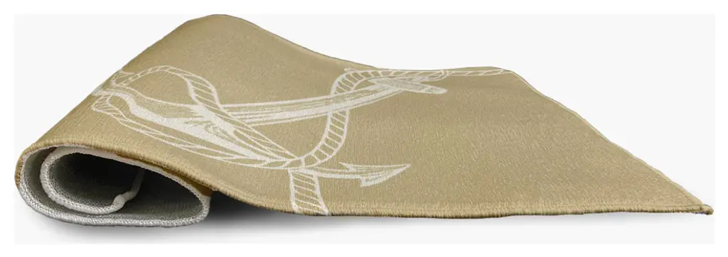 Bring the Seaside to your home decor with the Anchored Indoor/outdoor Rug from our Nautical Nights Collection. Everyone will delight in the space defining design brought to your porch, patio, kitchen, or bathroom by this area rug. The artistic and colorful design is printed on a soft polyester base with a skid resistant backing, making it a perfect way to add color, flare and personality to any indoor or outdoor space. To clean, use a mild soap and lay flat to dry.Soft underfoot, made of textured ChenilleStylish and functional to enliven your outdoor d?corSerged edgesCoated skid-resistant backingQuick-dry constructionStiff, lay-flat design