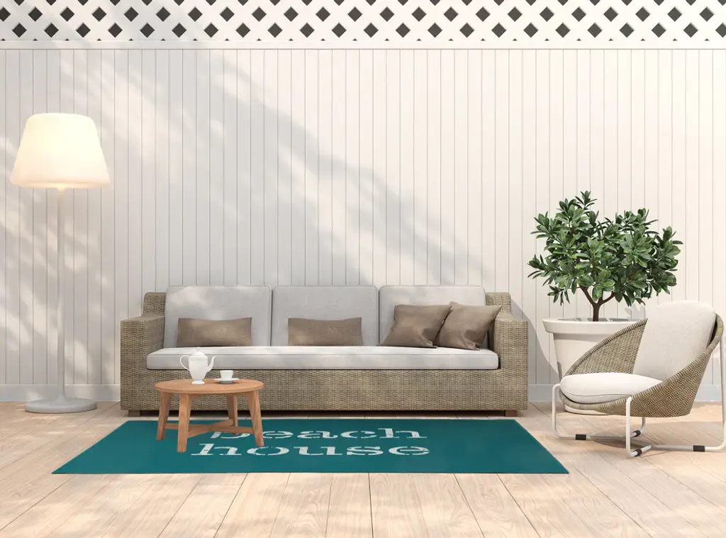 With the combination of sunny colors and beach style, you will love the Beach House Indoor/outdoor Rug from our Beach Vacation Collection. Everyone will delight in the space defining design brought to your porch, patio, kitchen, or bathroom by this area rug. The artistic and colorful design is printed on a soft polyester base with a skid resistant backing, making it a perfect way to add color, flare and personality to any indoor or outdoor space. To clean, use a mild soap and lay flat to dry.Soft underfoot, made of textured ChenilleStylish and functional to enliven your outdoor d?corSerged edgesCoated skid-resistant backingQuick-dry constructionStiff, lay-flat design