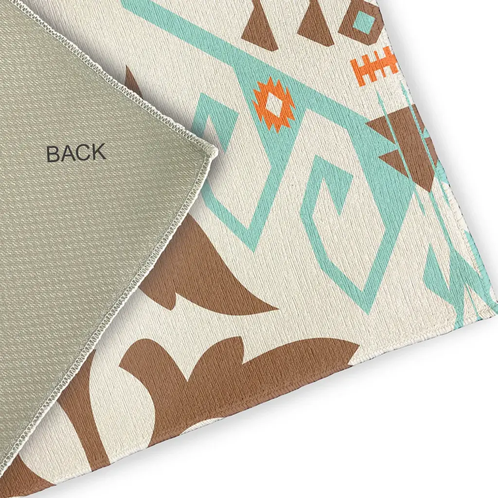 Create a colorful and radiant vibe around your home with the Bombay Medallion Indoor/outdoor Rug from our Happy Hippy Collection. Everyone will delight in the space defining design brought to your porch, patio, kitchen, or bathroom by this area rug. The artistic and colorful design is printed on a soft polyester base with a skid resistant backing, making it a perfect way to add color, flare and personality to any indoor or outdoor space. To clean, use a mild soap and lay flat to dry.